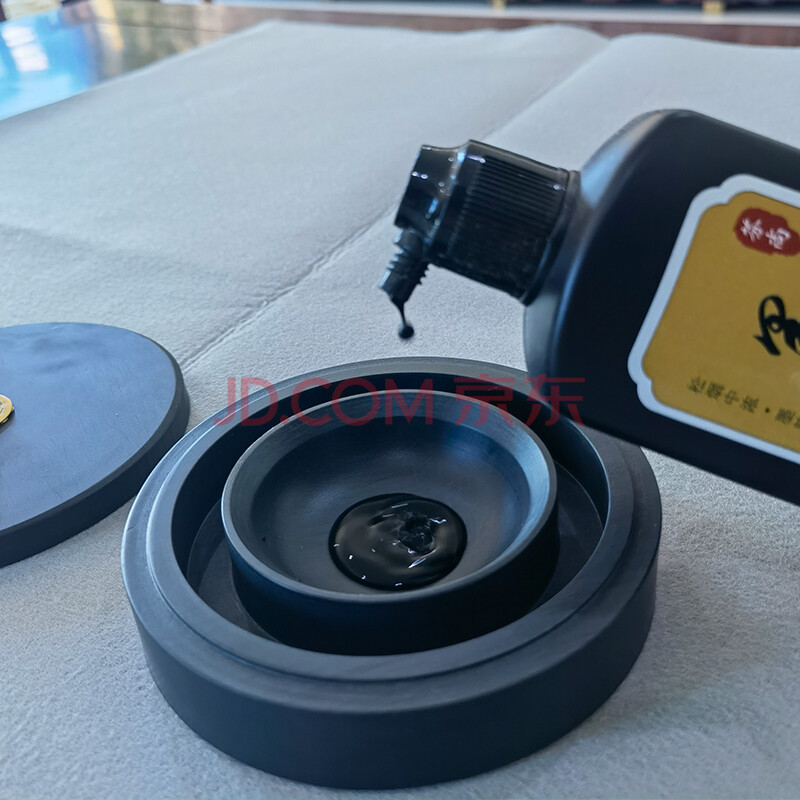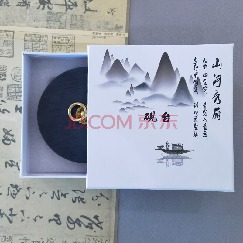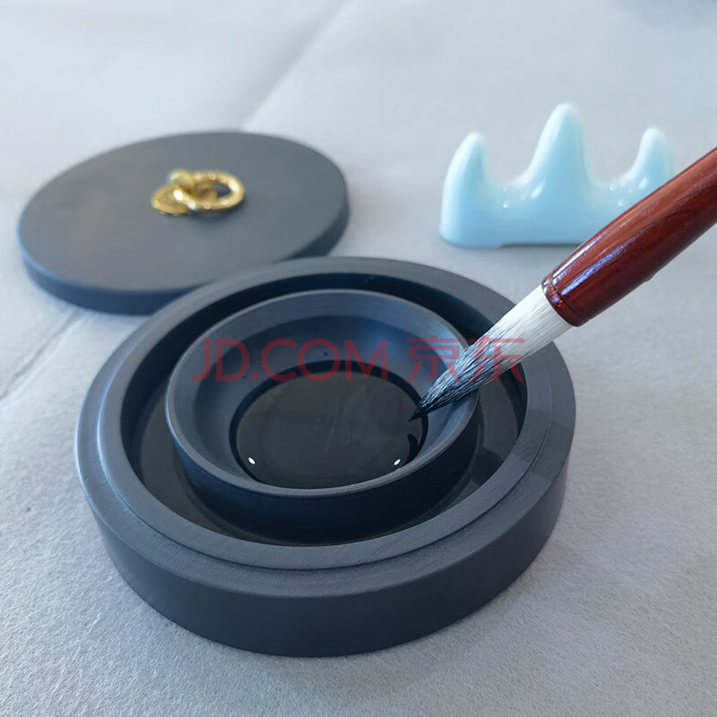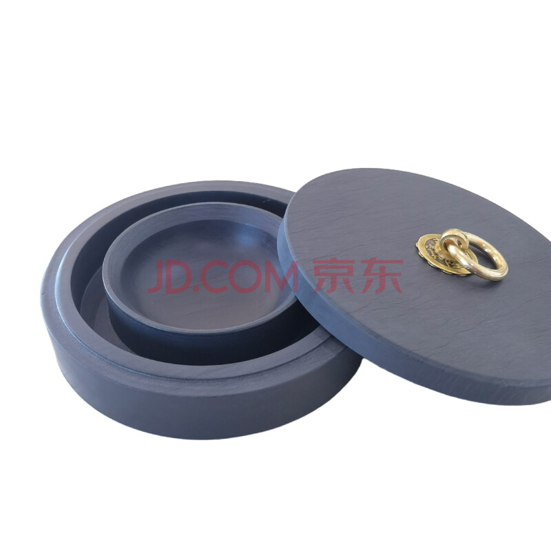 商品相册:芬尚 5寸火锅砚台 天然原石带盖双圈保湿不干墨砚池 学生毛笔书法国画用(礼盒装)第