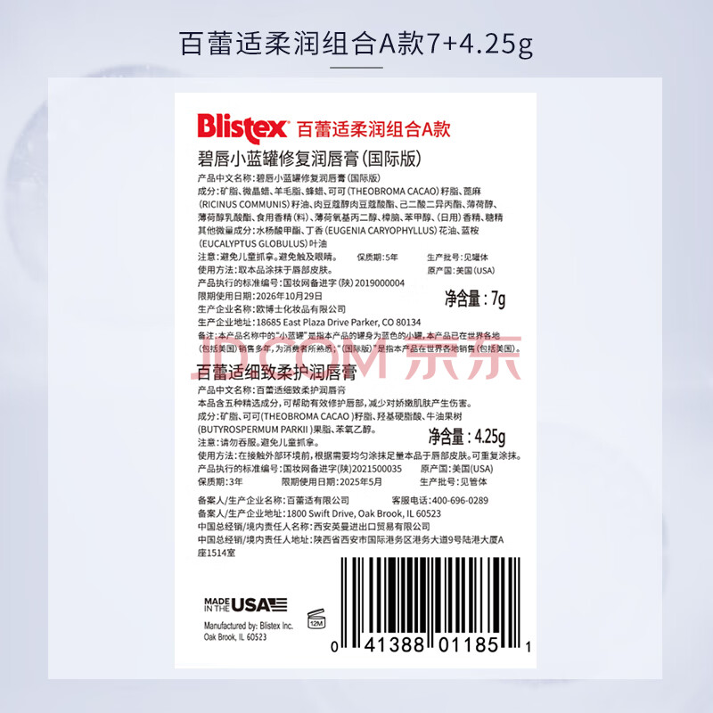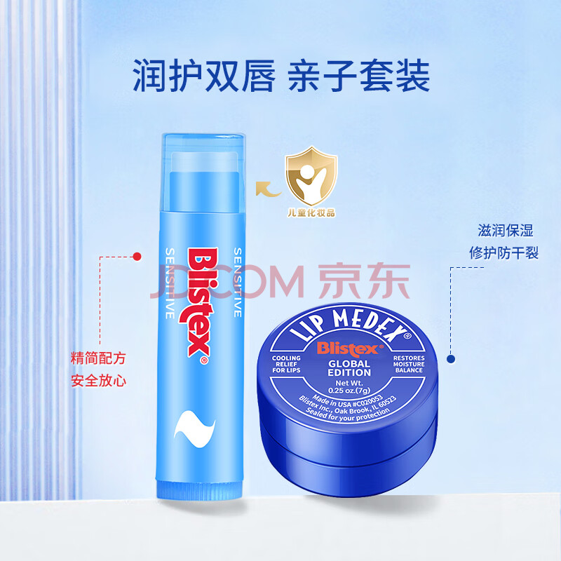 商品相册:百蕾适润唇膏亲子组合套装(小蓝罐7g+母婴唇膏4.25g) 母婴可用第