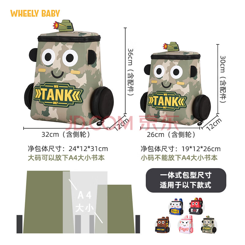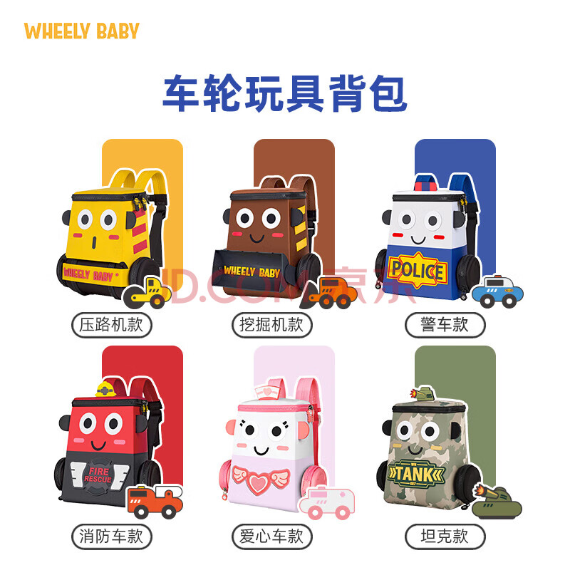 商品相册:WHEELY BABY幼儿园书包儿童背包小汽车3-6岁男孩女生日礼物警车轻双肩包大绿第