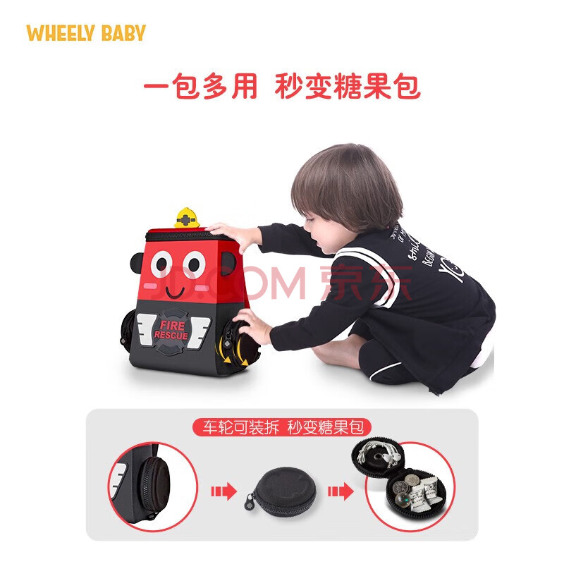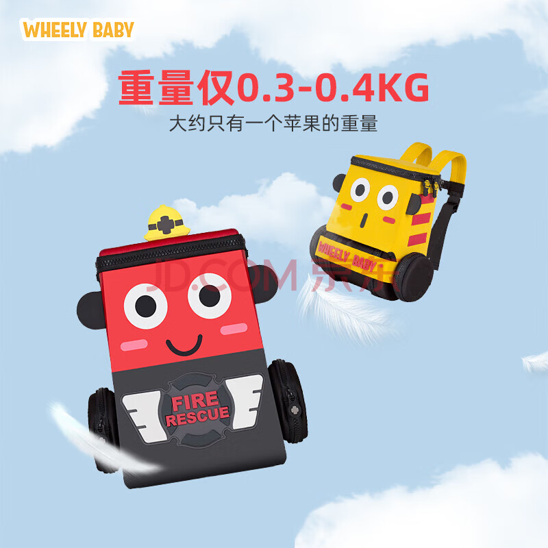商品相册:WHEELY BABY幼儿园书包儿童背包小汽车3-6岁男孩女生日礼物消防车双肩包大红第