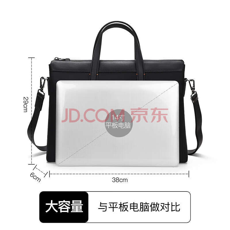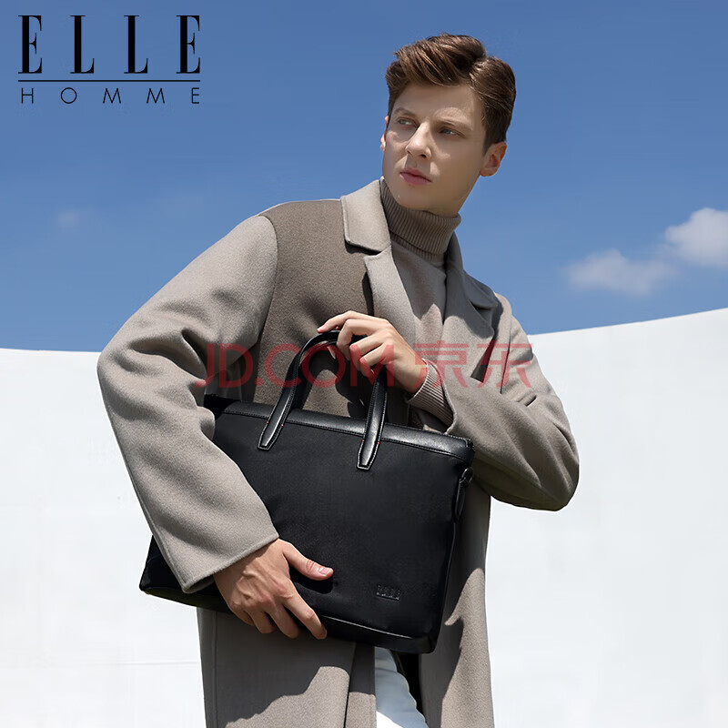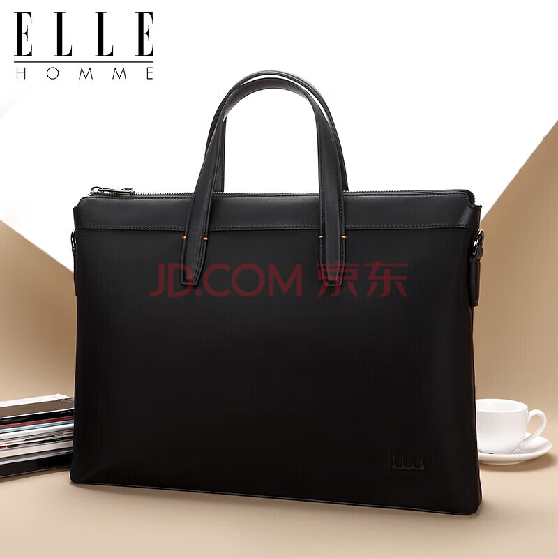 商品相册:ELLE HOMME 商务男士公文包 尼龙帆布手提包 斜跨14英寸电脑包14610黑色第