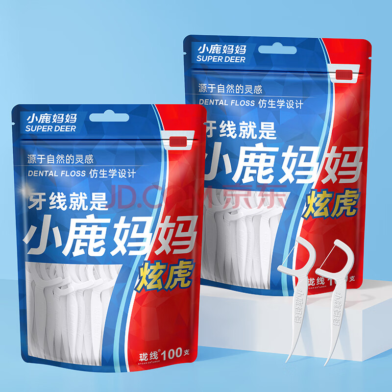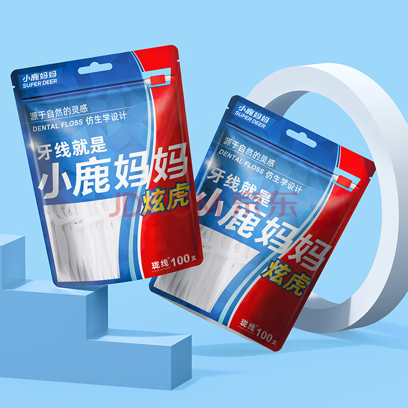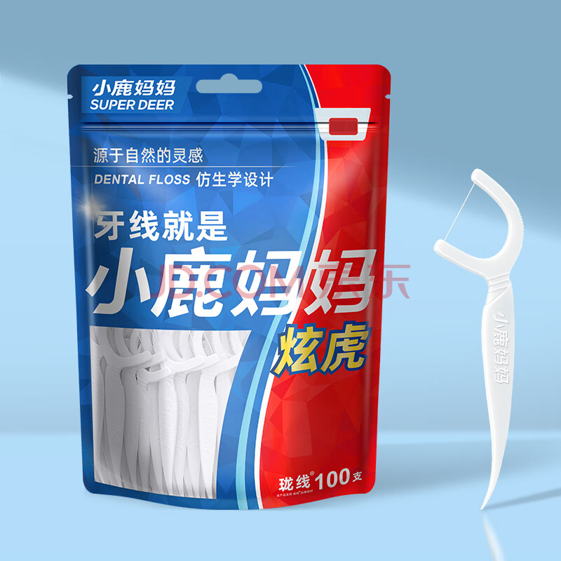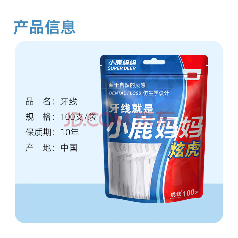 商品相册:小鹿妈妈细滑圆线牙线棒100支*5袋 清洁齿缝牙签牙线棒便携随身盒第