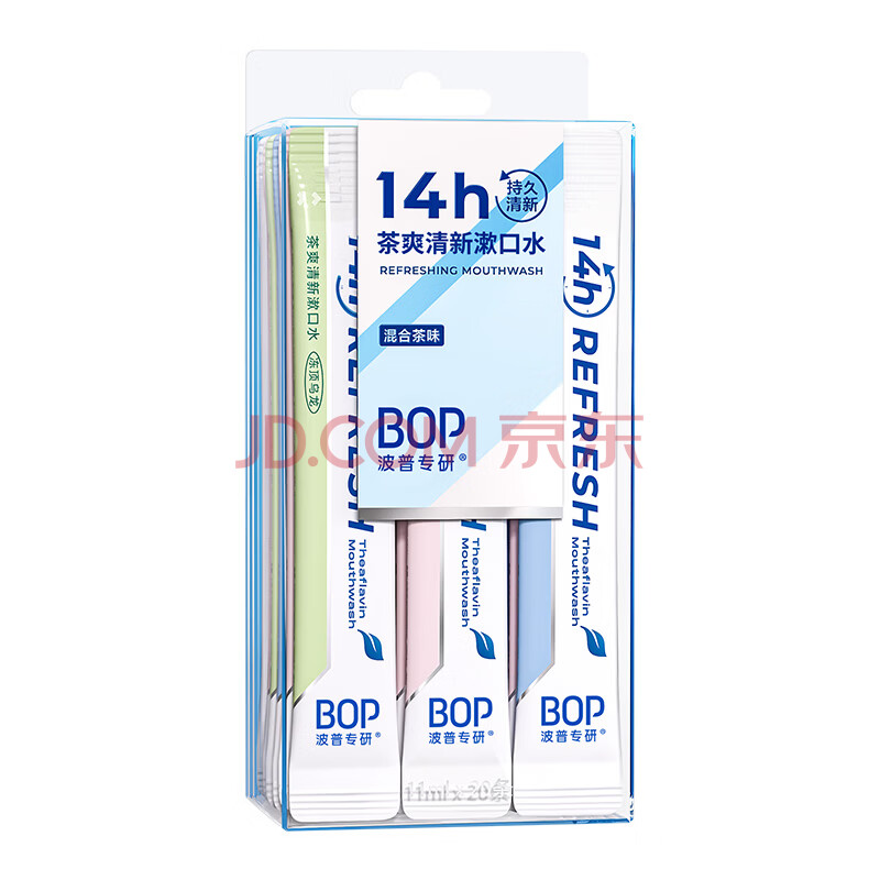 商品相册:波普专研(bop)【迪丽热巴同款】茶爽条装漱口水便携口腔清洁茶味混合装20条/盒第