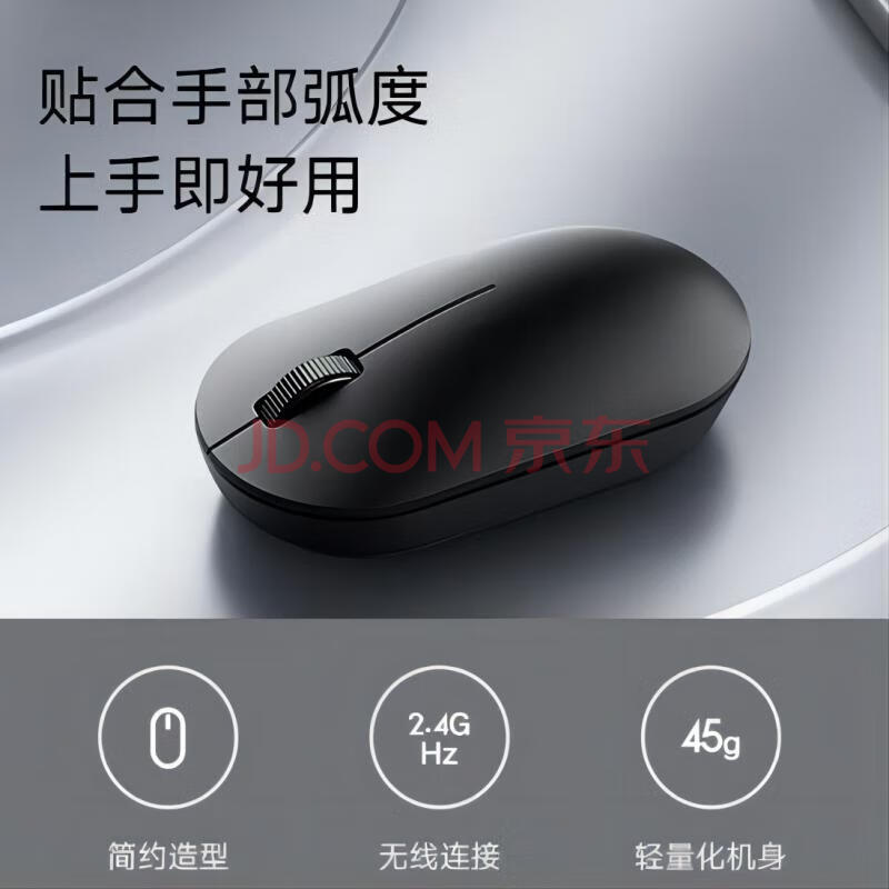 商品相册:小米(MI)无线鼠标 Lite2 2.4GHz无线传输 办公鼠标 黑色 轻量化设计便携办公mac笔记本 握感舒适第