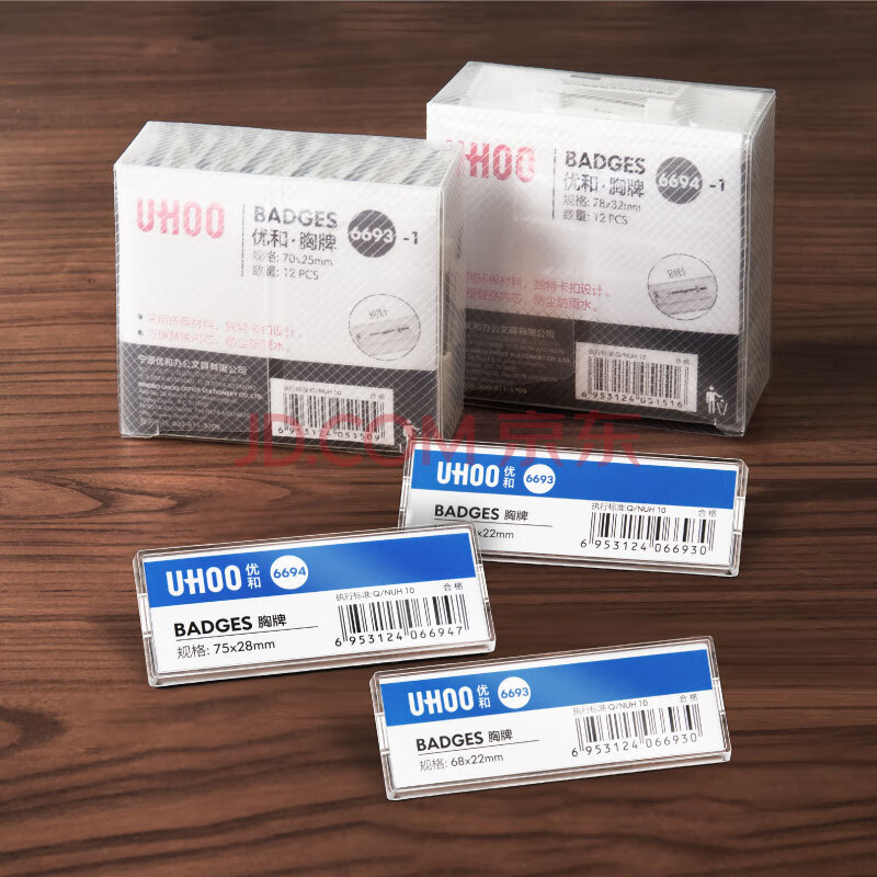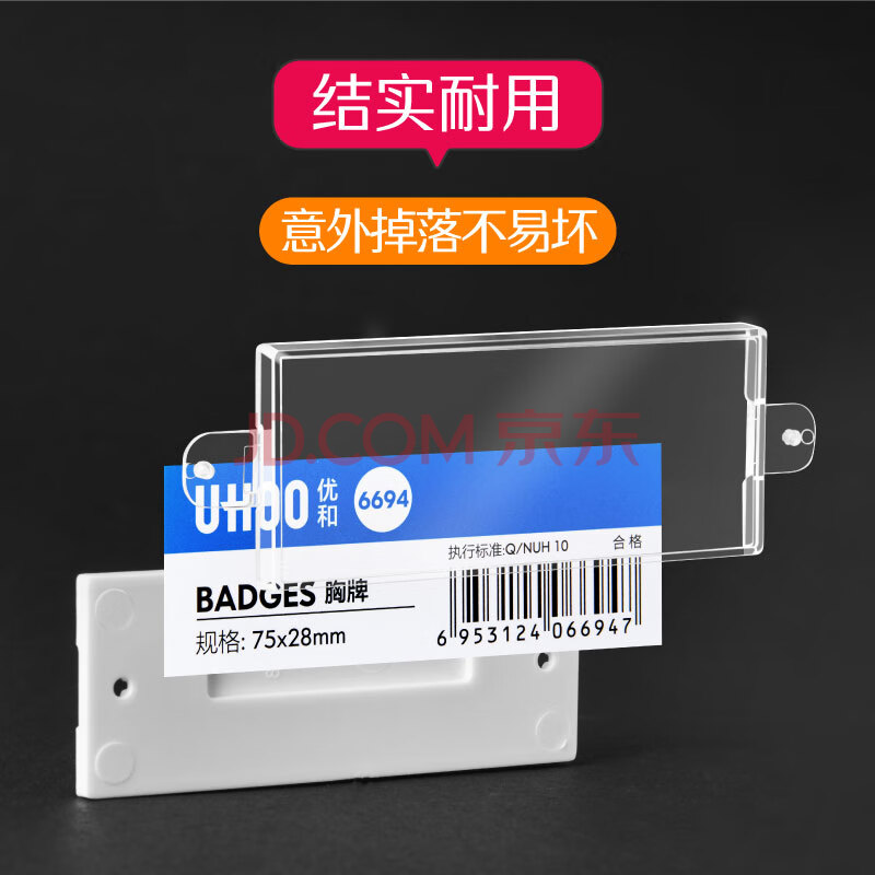 商品相册:优和(UHOO) 6694 别针胸牌 白色底盖 12个/盒 高透防水 内芯可替换 工作牌 工号牌 姓名牌第