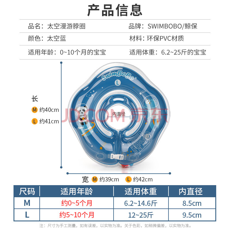 商品相册:swimbobo婴儿游泳圈脖圈新生儿游泳圈婴儿洗澡颈圈蓝色BO1002L第