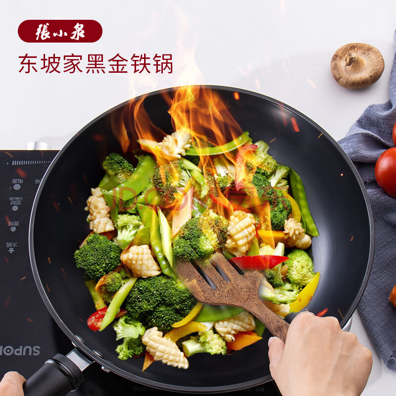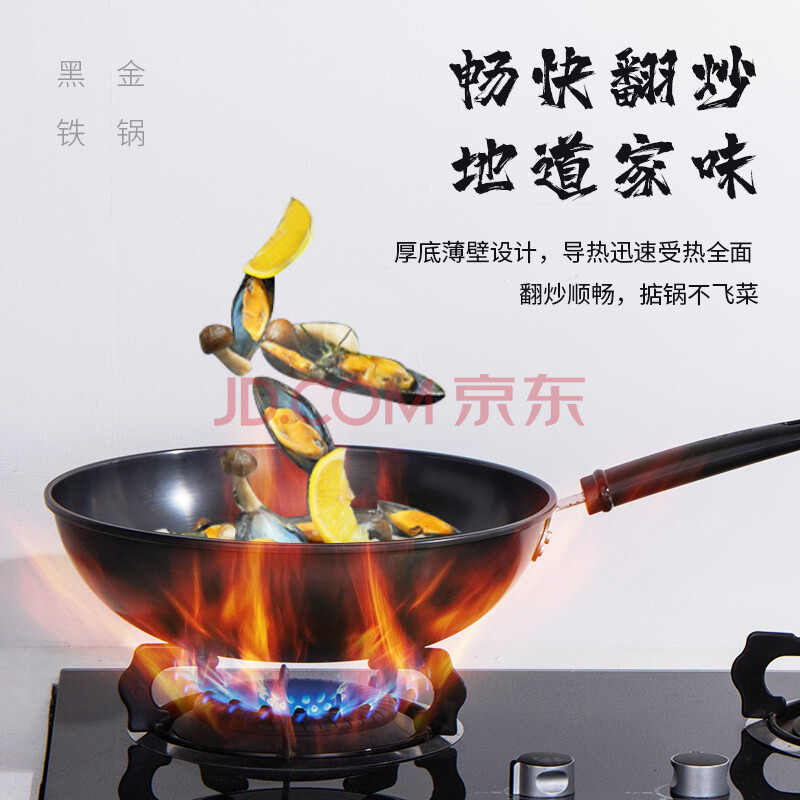 商品相册:张小泉 东坡家黑金铁锅 32CM 家用厨房无涂层炒锅电磁炉燃气通用第
