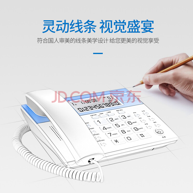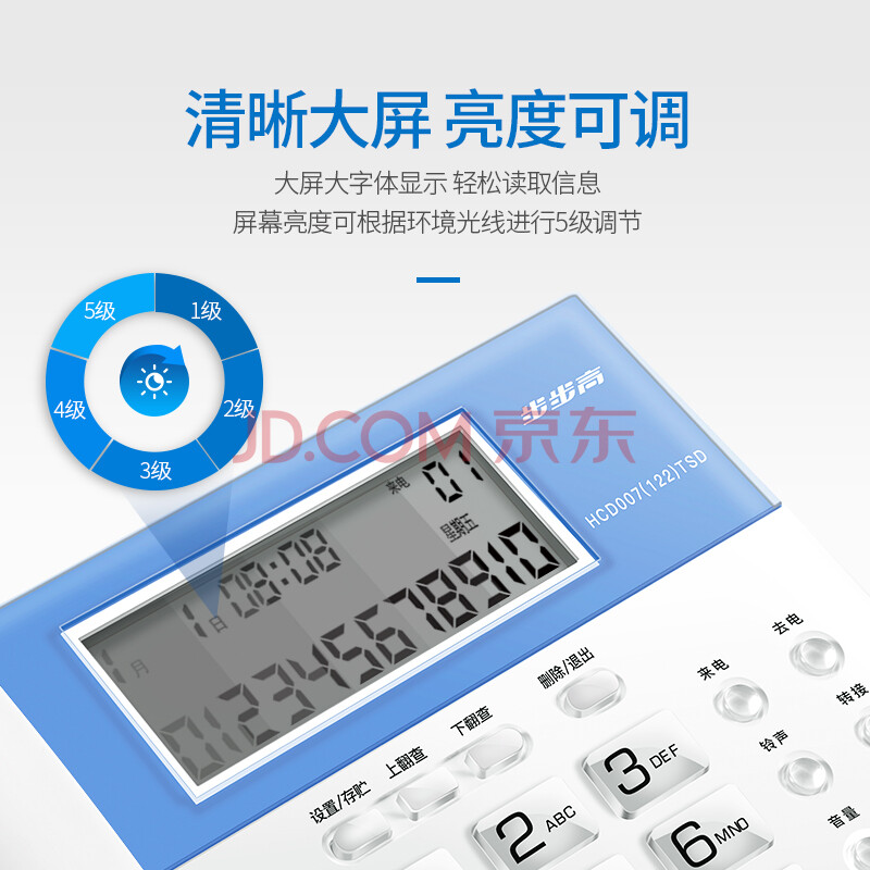 商品相册:步步高(BBK)电话机座机 固定电话 办公家用 免电池 4组一键拨号 HCD122灰蓝第