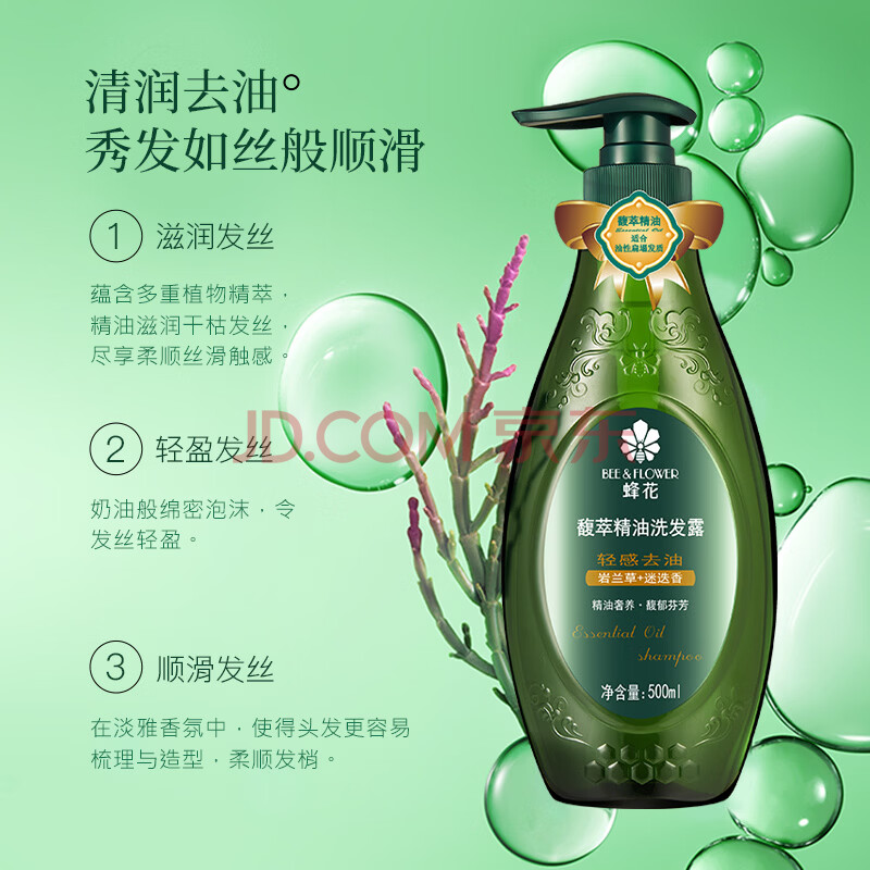 商品相册:蜂花 馥萃精油洗发水温和轻感去油洗发露无硅油去油保湿柔顺500ml第
