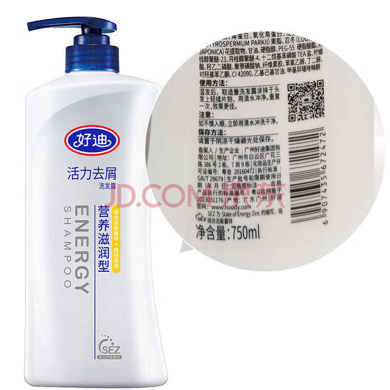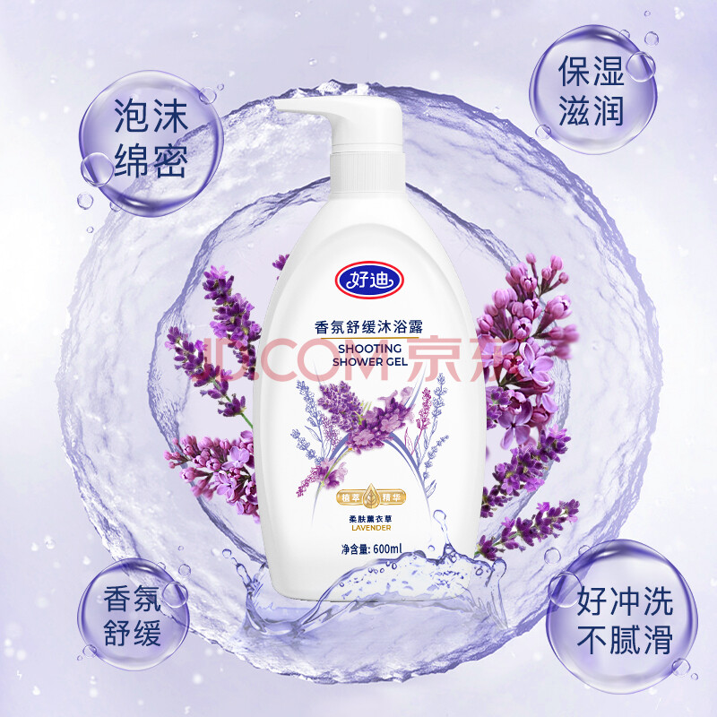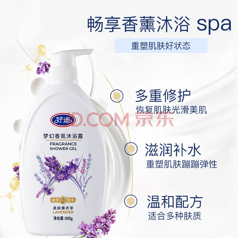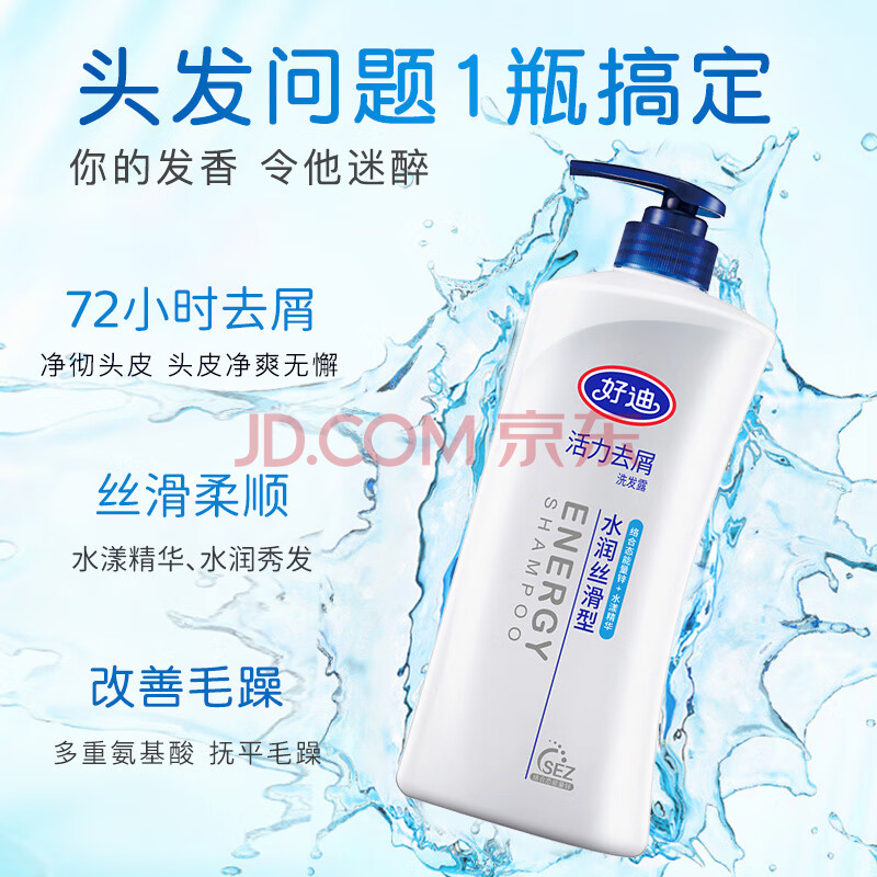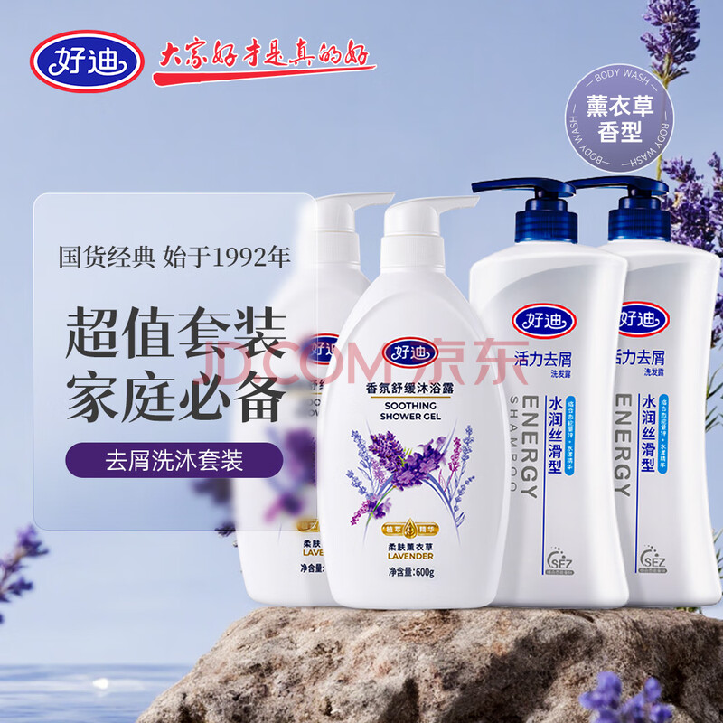 商品相册:好迪洗沐套装去屑洗发水洗头膏柔顺750ml*2+持久留香沐浴露600ml*2第