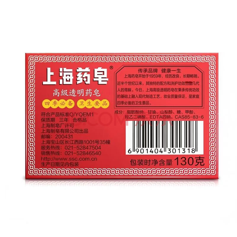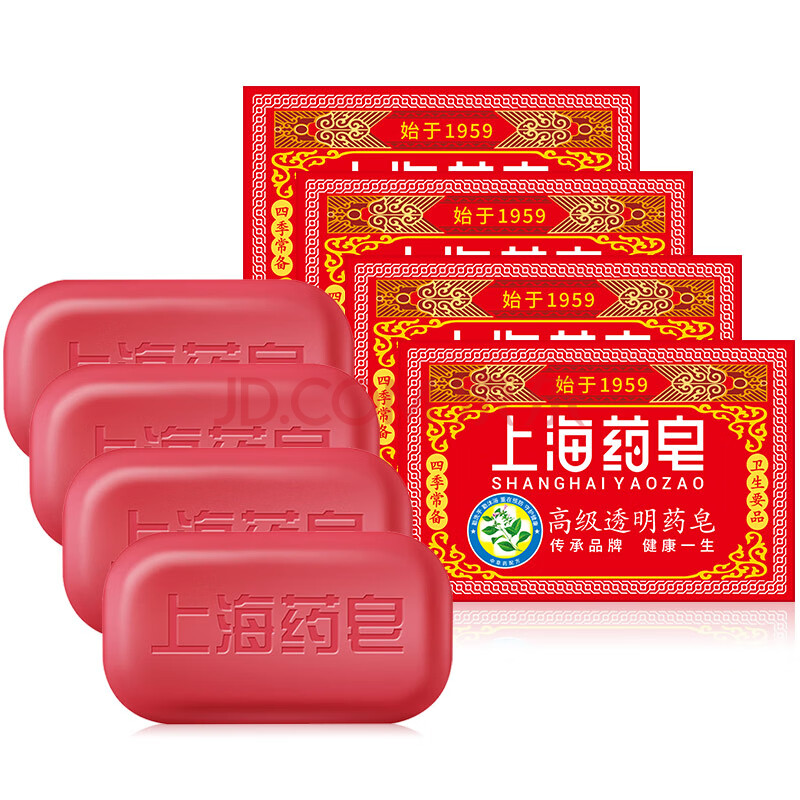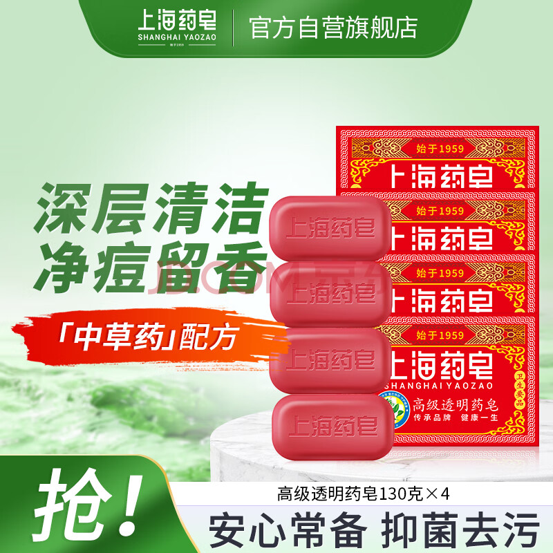 商品相册:上海药皂香皂肥皂高级透明药皂祛痘止痒控油去异味洗澡沐浴洗手去污130g*4第