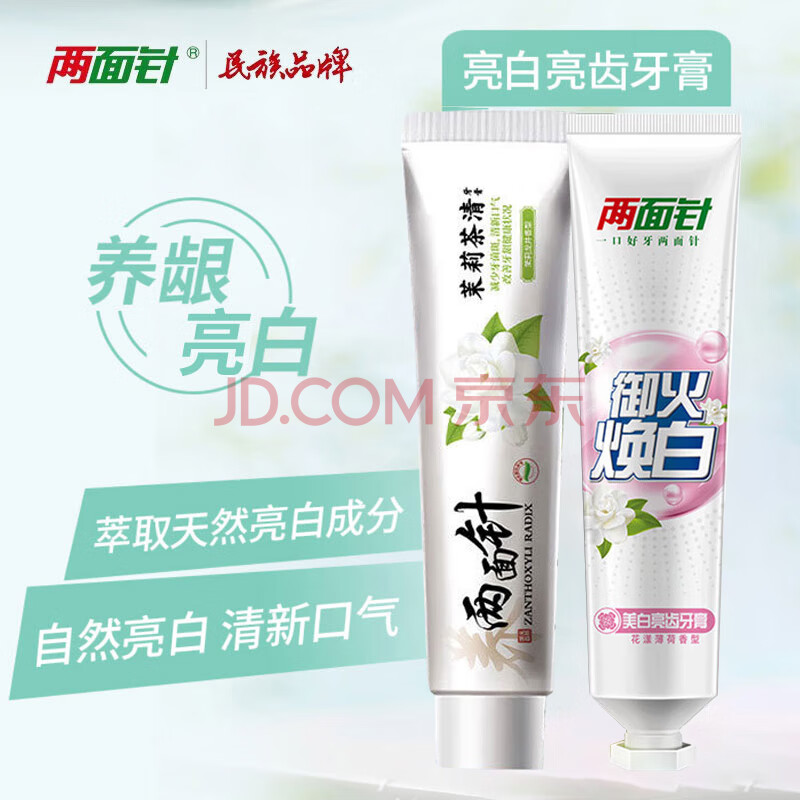 商品相册:两面针(LMZ)护龈牙膏 健白亮齿 清新口气 2支220g(薄荷+茉莉)第