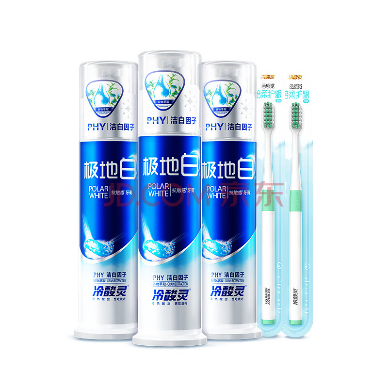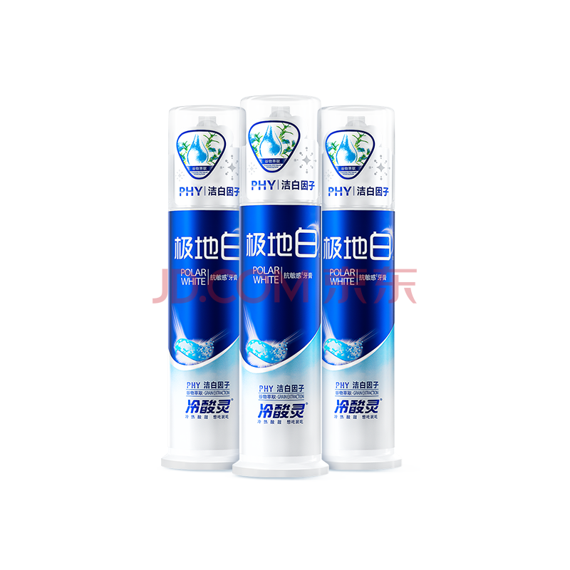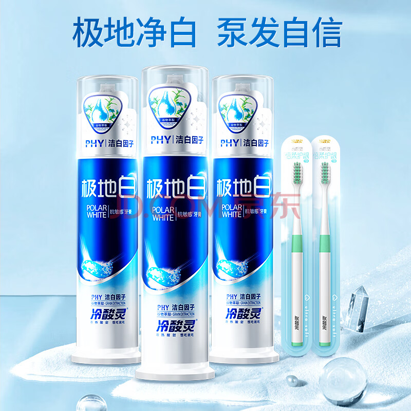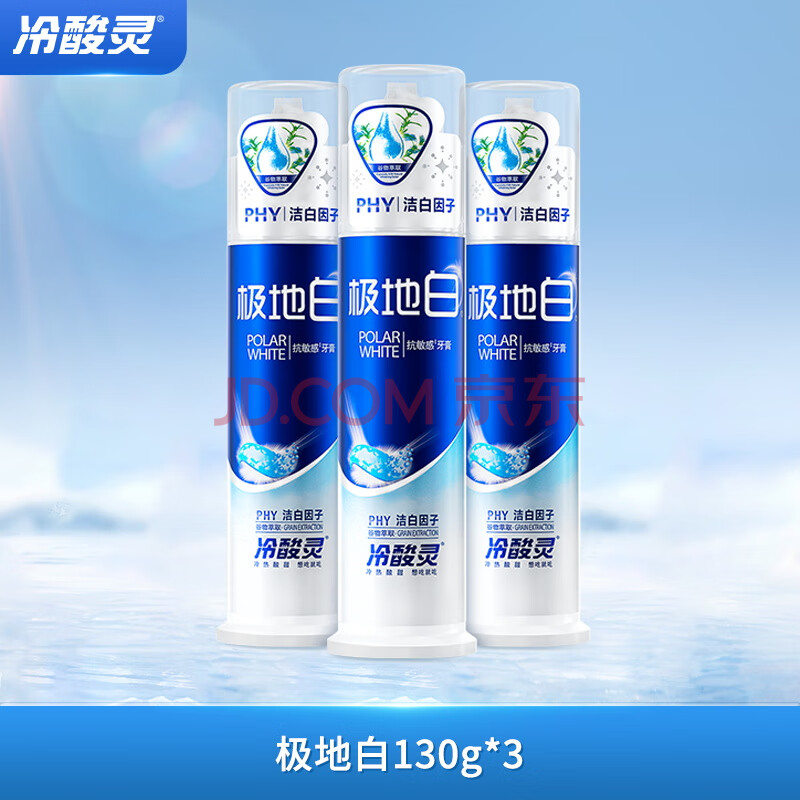 商品相册:冷酸灵极地白泵式牙膏清新口气抗敏美白薄荷香型 3支装390g【吴磊推荐】第