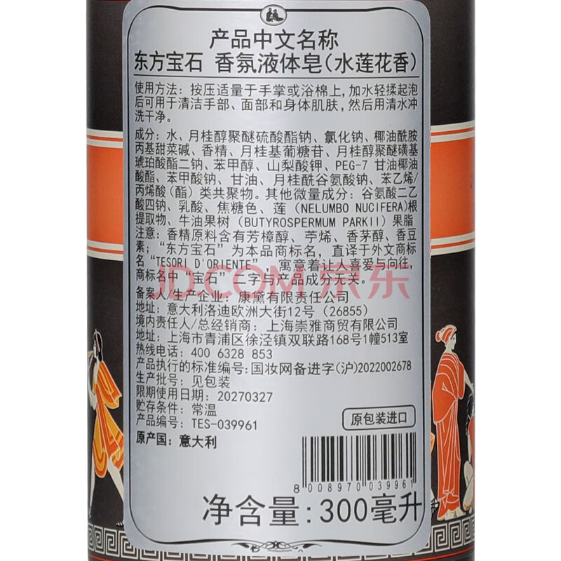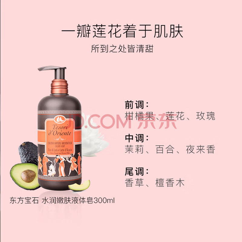 商品相册:东方宝石水莲花香液体皂300ml原装进口水润嫩肤洗手清洁净肤去油沐浴露第
