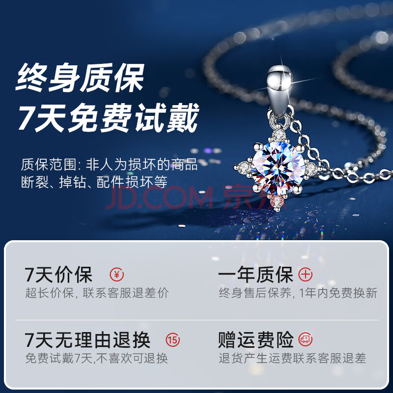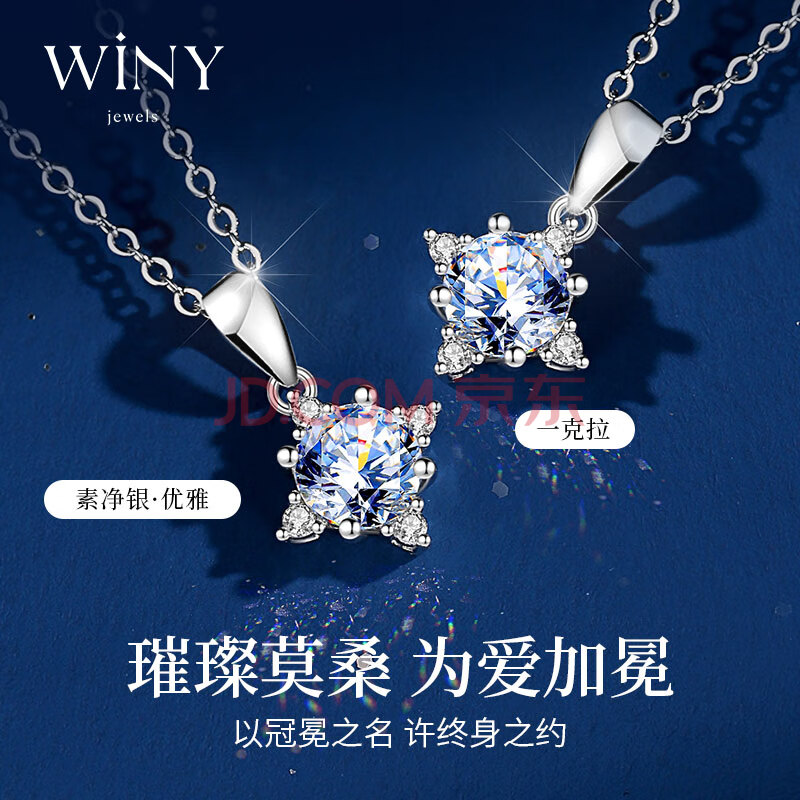 商品相册:唯一(Winy)一克拉莫桑石纯银项链女款2026新款吊坠生日礼物送轻奢女友老婆第