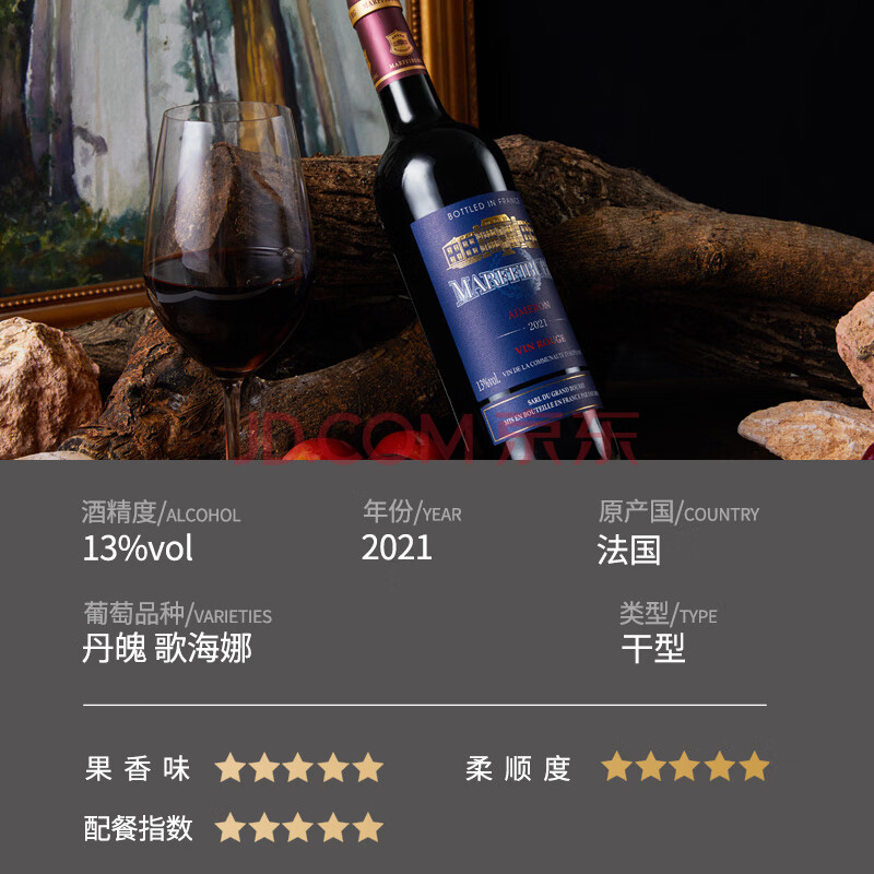 商品相册:玛菲堡庄园(MARFFIBURG)法国原瓶进口红酒歌海娜干红葡萄酒一箱高档6瓶送礼礼盒装整箱第