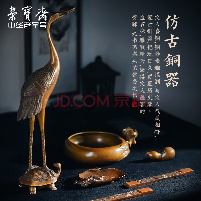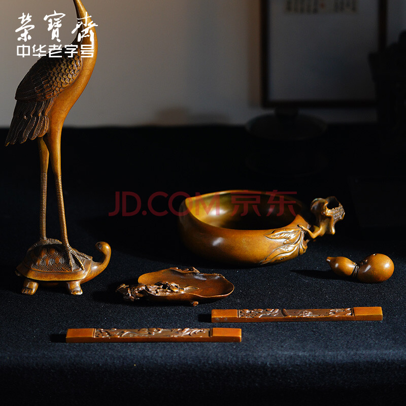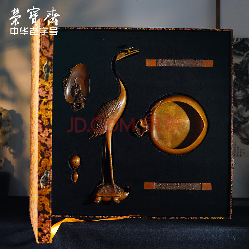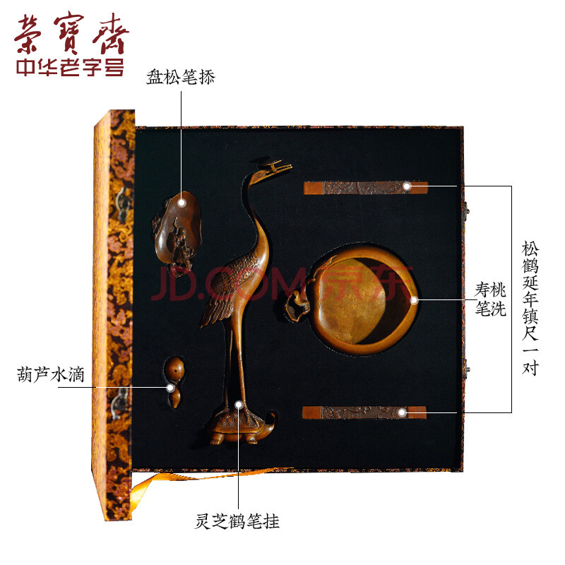 商品相册:荣宝斋 文房四宝套装 收藏仿古铜器文玩摆件镇纸镇尺笔洗水滴笔筒神兽 高档礼盒器 福寿长青第1张/共4