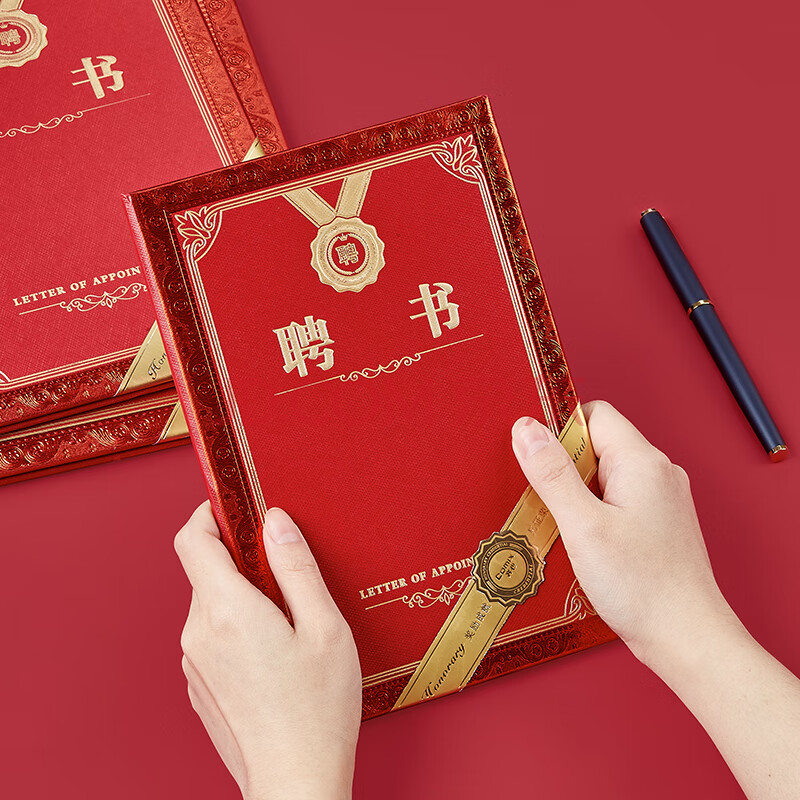 商品相册:齐心(Comix) 聘书精致烫金特种纸封面外壳 附12页内芯8K/10本装 颁奖表彰奖状 办公文具 C5105N第