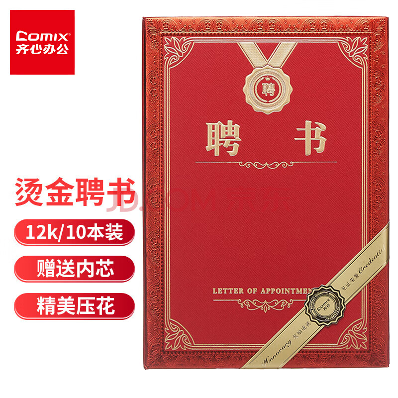 商品相册:齐心(COMIX)聘书精致烫金特种纸封面外壳 附12页内芯12K/10本装 颁奖表彰奖状 办公文具 C5106第