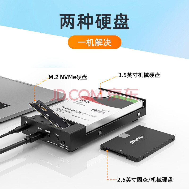 商品相册:麦沃(MAIWO)移动固态/机械硬盘盒 2.5/3.5英寸SATA串口 M.2 NVME固态硬盘对拷机 外置台式笔记本读写盒 K3527N第