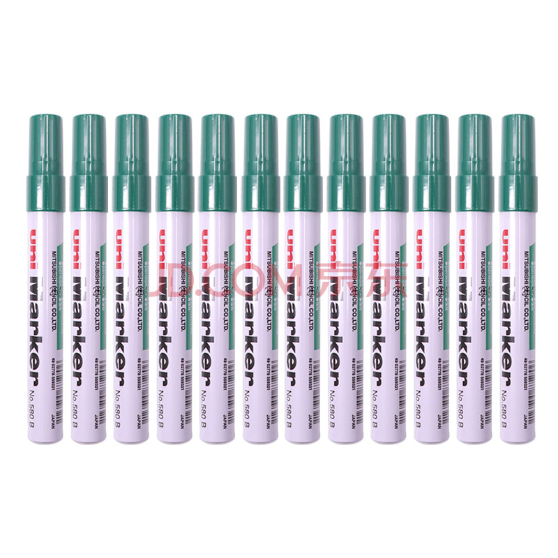 商品相册:uni三菱 单头油性记号笔马克笔 斜头方嘴大头笔 580B 绿色12支装第