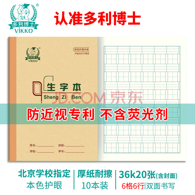 商品相册:多利博士10本 36K20张生字本6格6行拼音田字格小学生1-3年级作业本加厚护眼学校老师推荐北京指定开学必备第