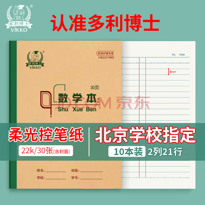 商品相册:多利博士22K学生双色数学本作业本北京小学生3-6年级初中幼儿园软抄本数学本笔记本子30张10本【全网低价】第