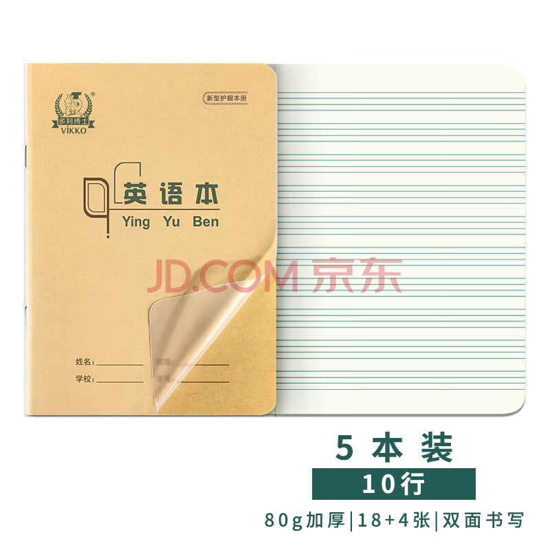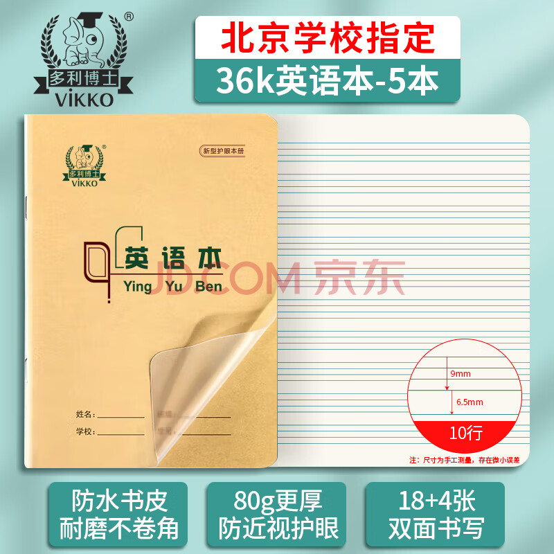 商品相册:多利博士 36k英语本10行带书皮英语簿北京小学生3-6年级初中作业本四线三格英文本18+4张5本【开学必备】 第