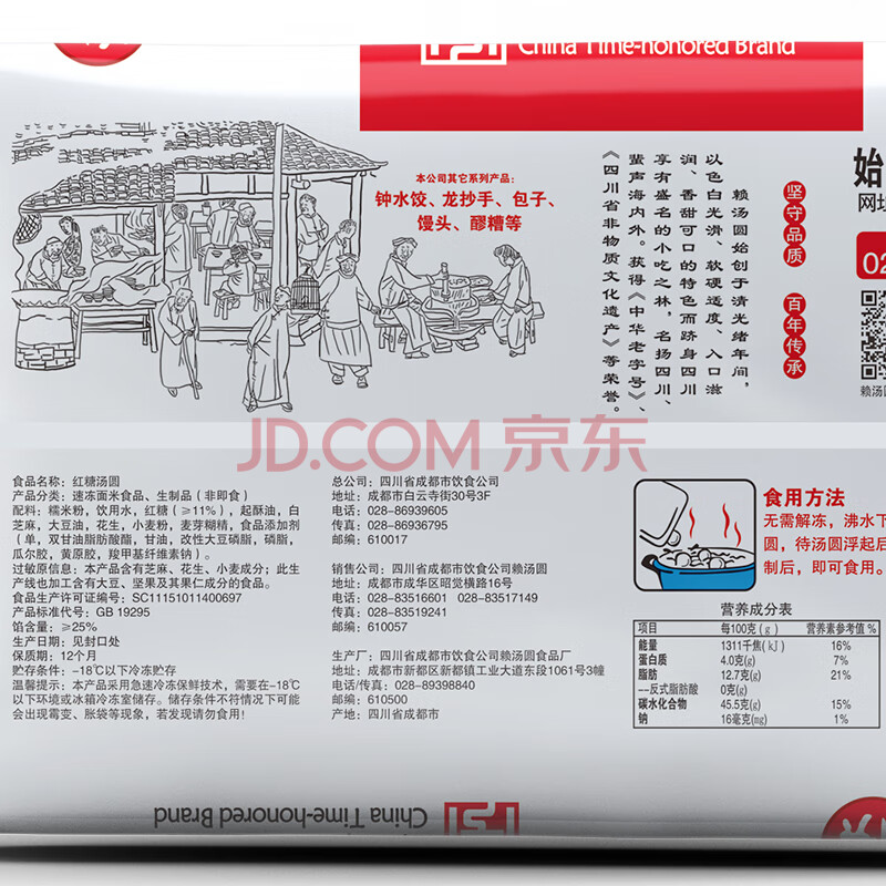 商品相册:赖红糖汤圆 500g*2袋 (30只 大汤圆 元宵 早餐 成都小吃 家庭装)第