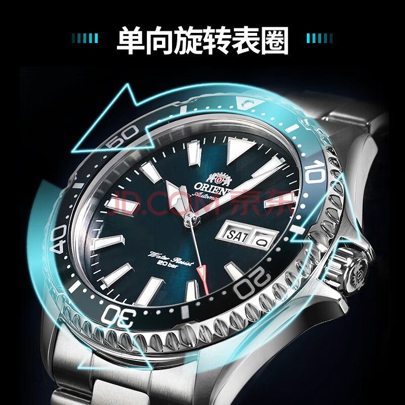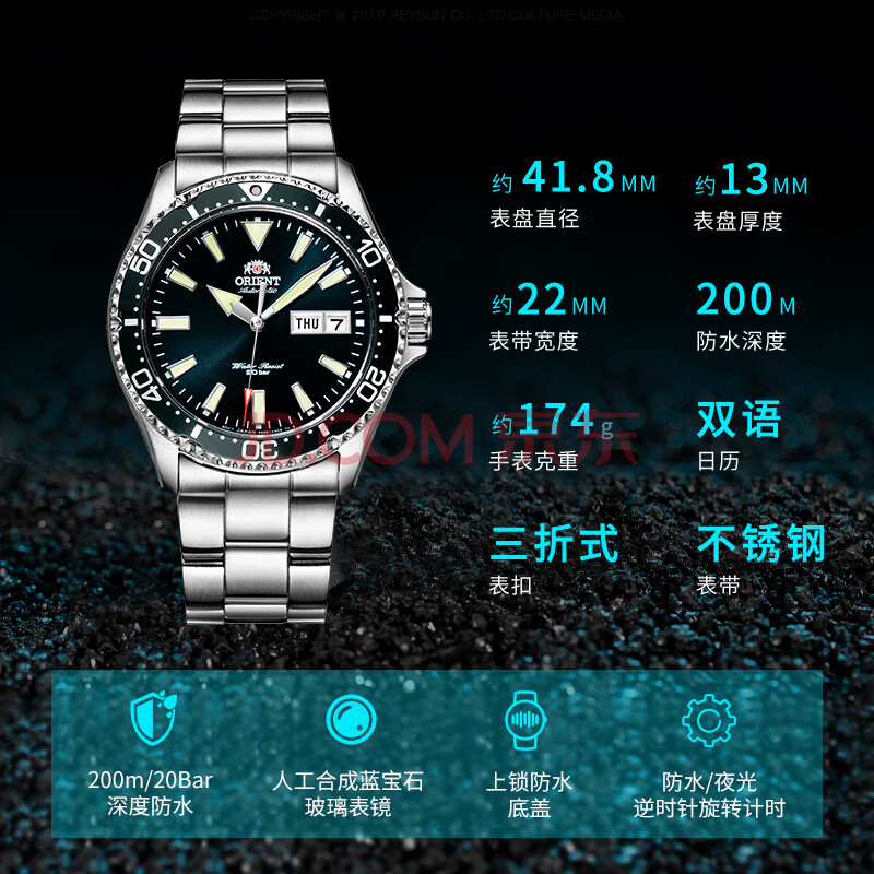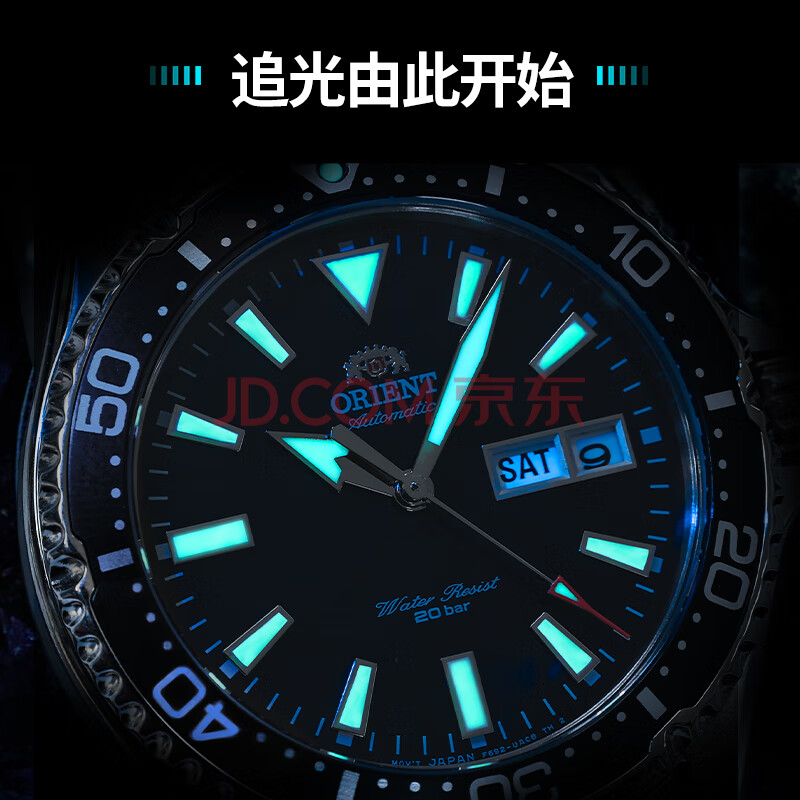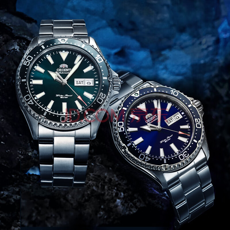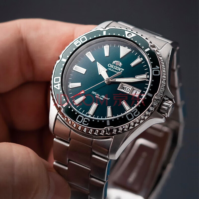 商品相册:ORIENT东方双狮手表日本机械表进口绿盘水鬼200米防水夜光潜水表AA0004第