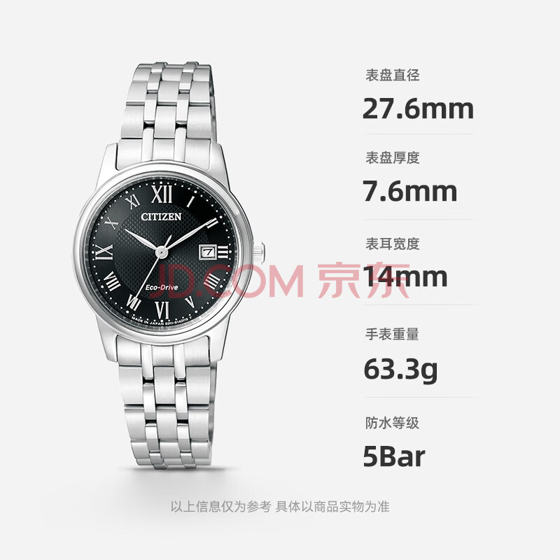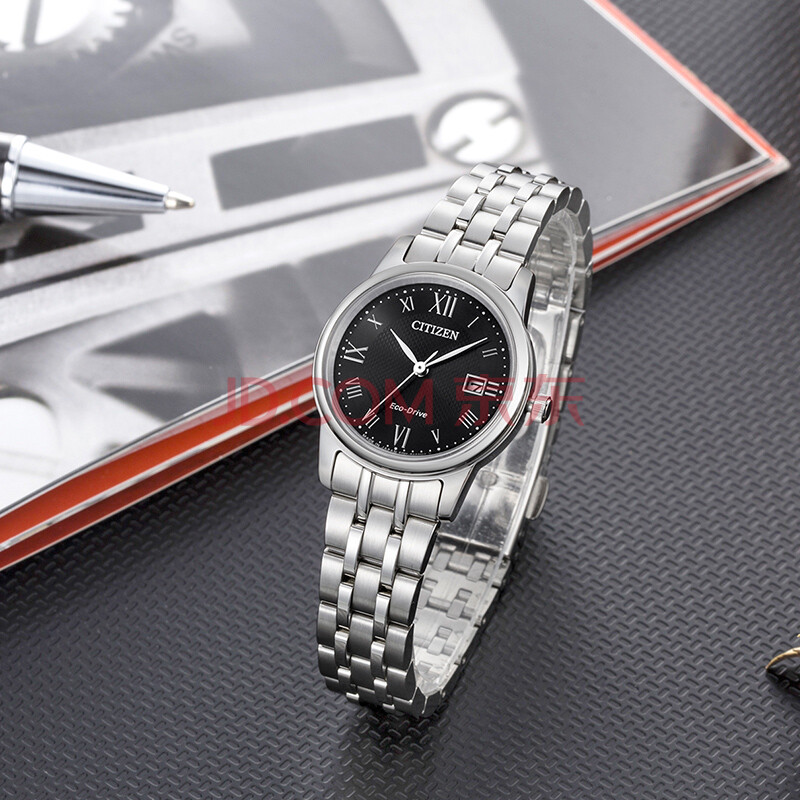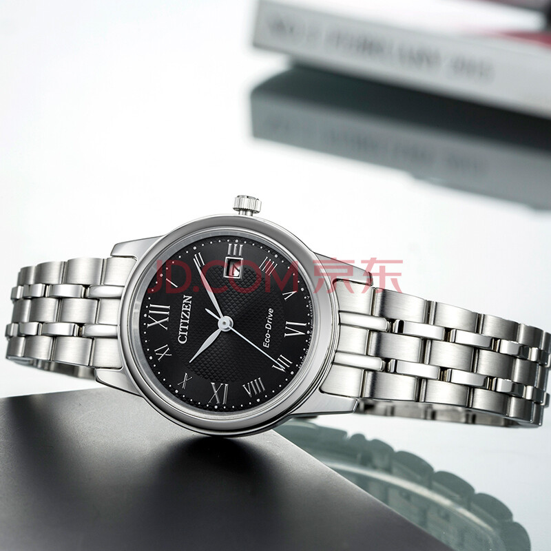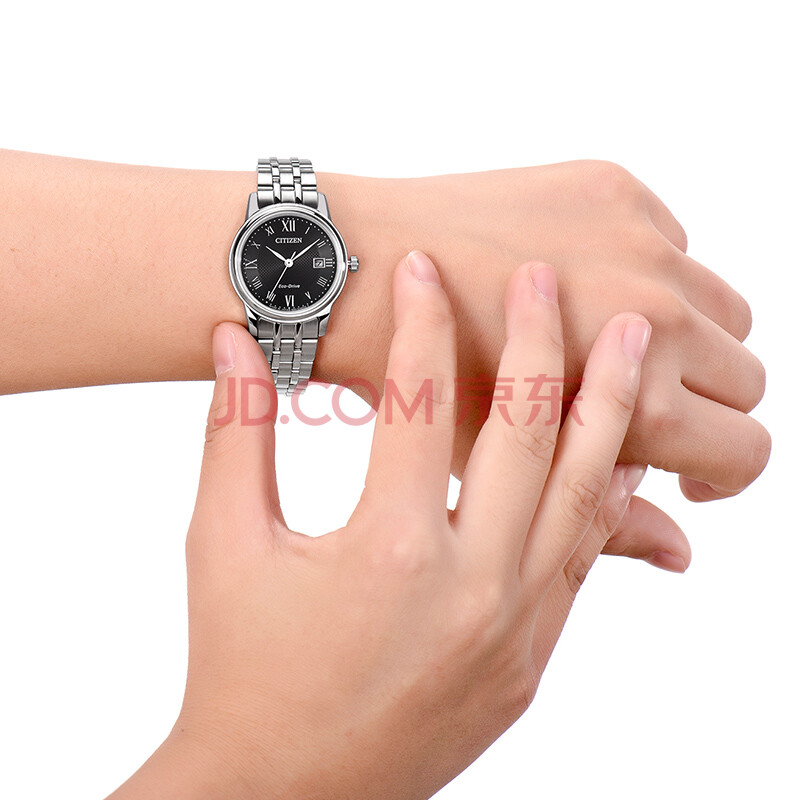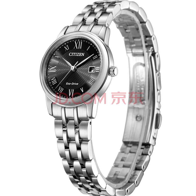 商品相册:西铁城(CITIZEN)手表女日韩表光动能日期显示黑盘钢带学生送女友礼物EW2310-59E第