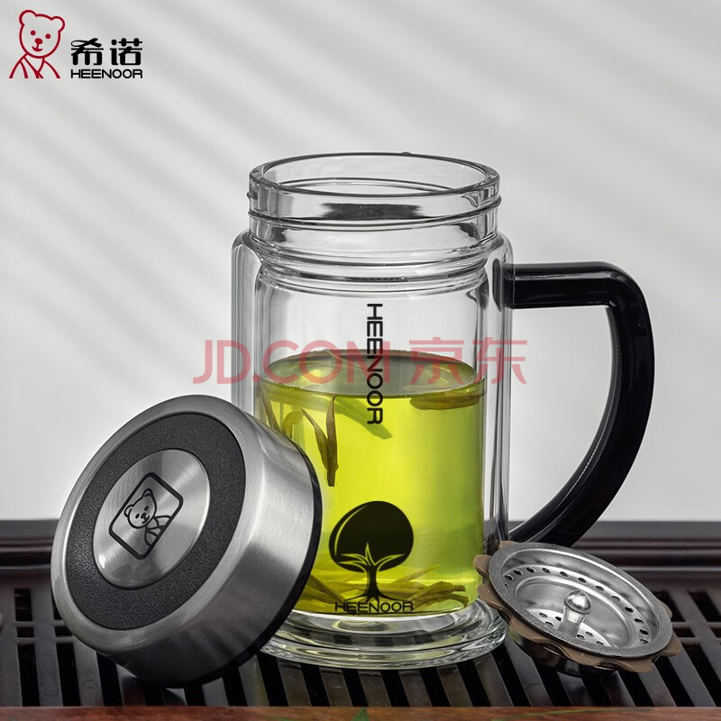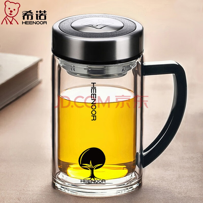 商品相册:希诺 XN-6721 双层玻璃杯带手柄商务办公室泡茶杯过滤网透明水杯子 435ML第1张/共5