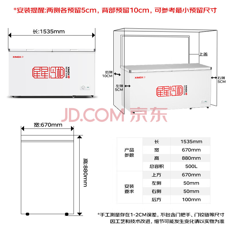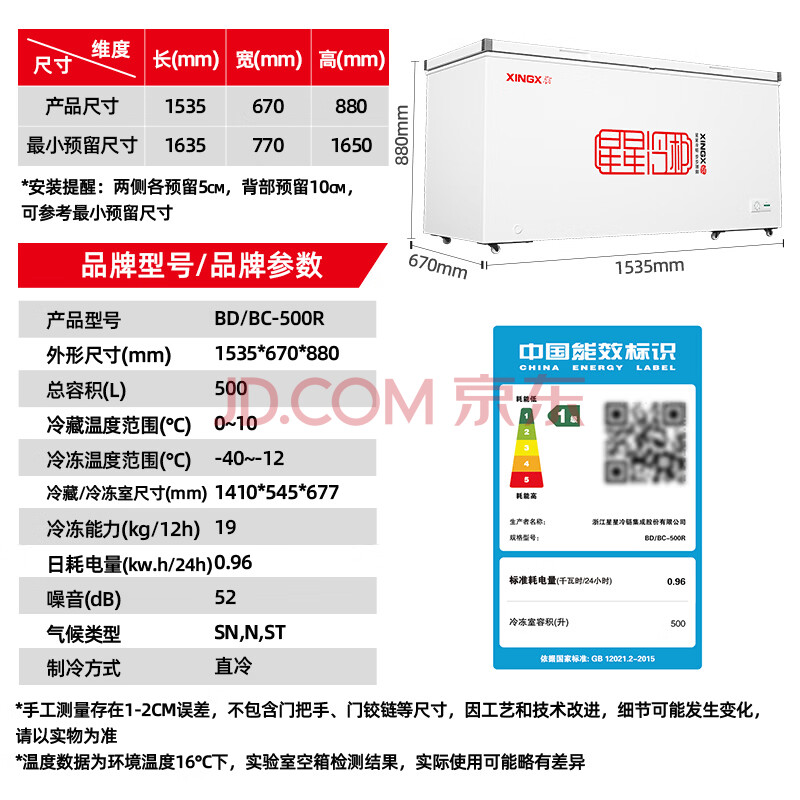 商品相册:星星(XINGX)500L商用冰柜冷柜 大容量冰箱节能保鲜冷藏冷冻顶开柜 减霜单箱卧式冷柜 BD/BC-500R 第