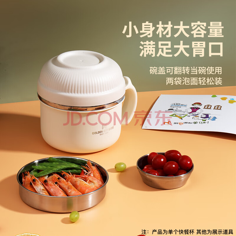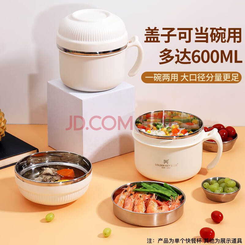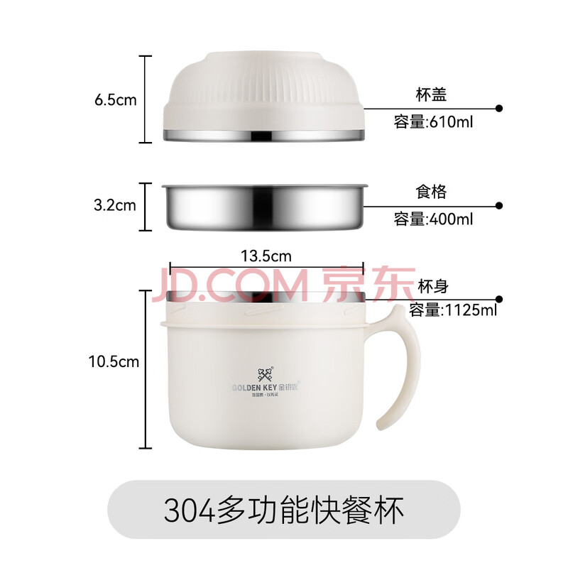 商品相册:金钥匙(GOLDEN KEY)304不锈钢 14cm多功能快餐杯学生饭盒便当盒双层隔热GK-R140T-W第