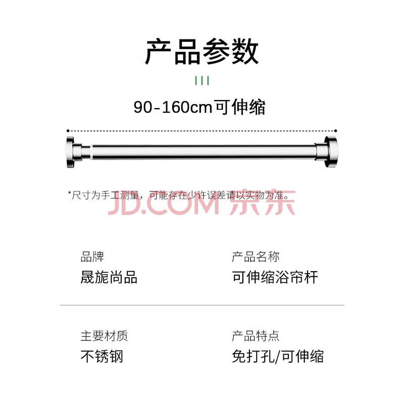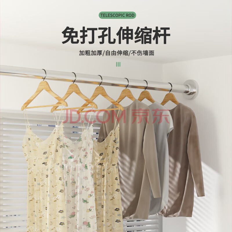 商品相册:晟旎尚品浴帘杆免打孔不锈钢伸缩杆晾衣杆窗帘门帘杆衣柜支撑杆0.9-1.6M第