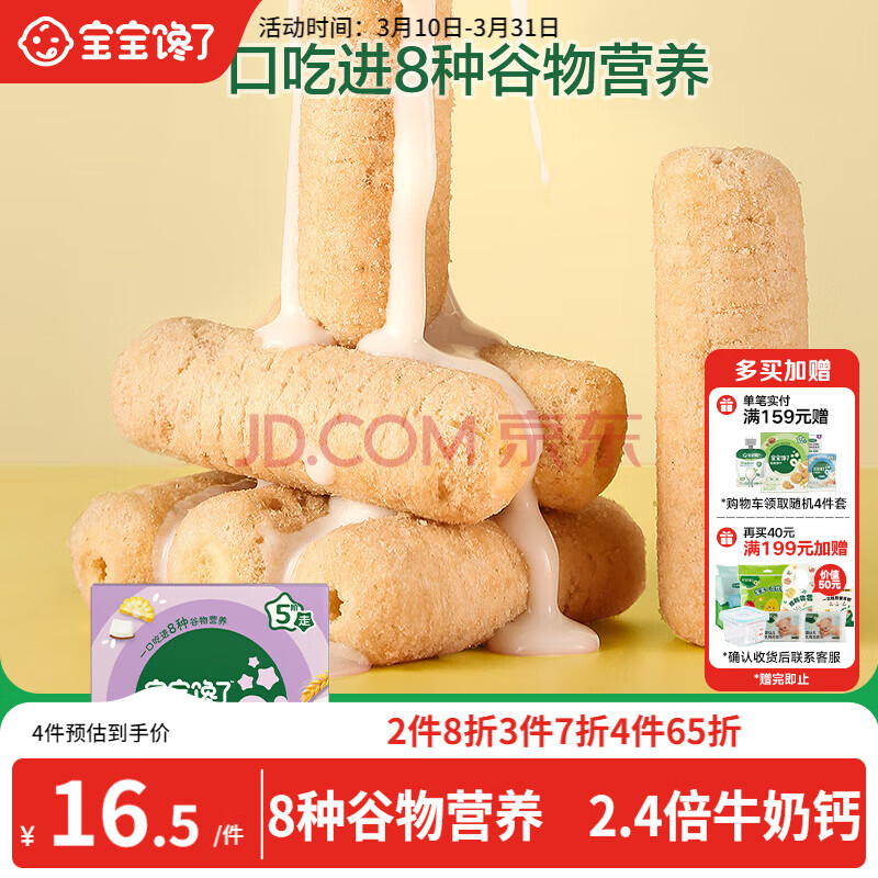 商品相册:宝宝馋了高钙椰子奶酪谷物棒米果泡芙棒磨牙棒儿童零食60g第