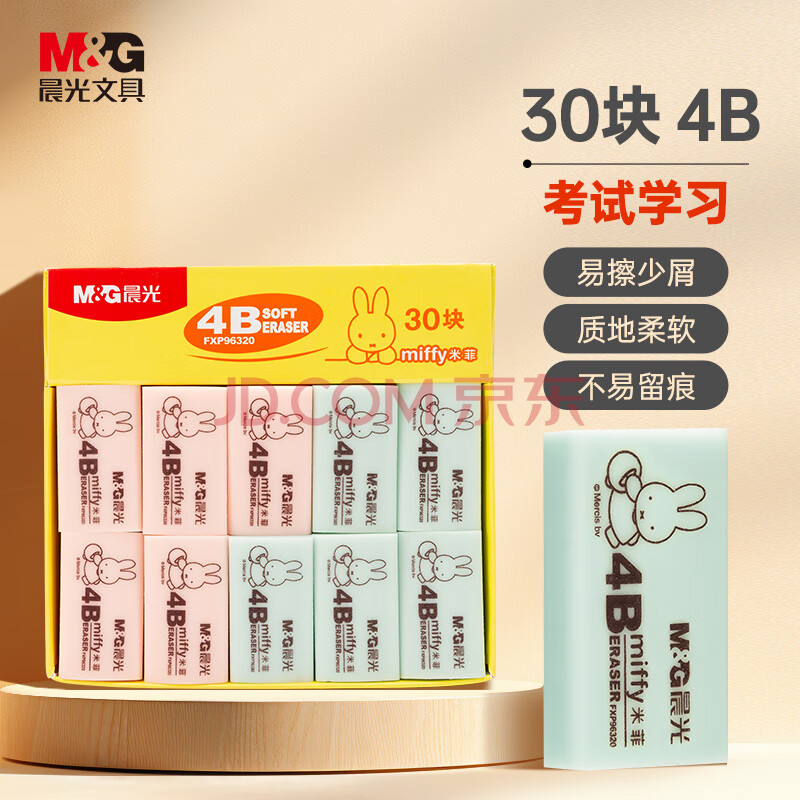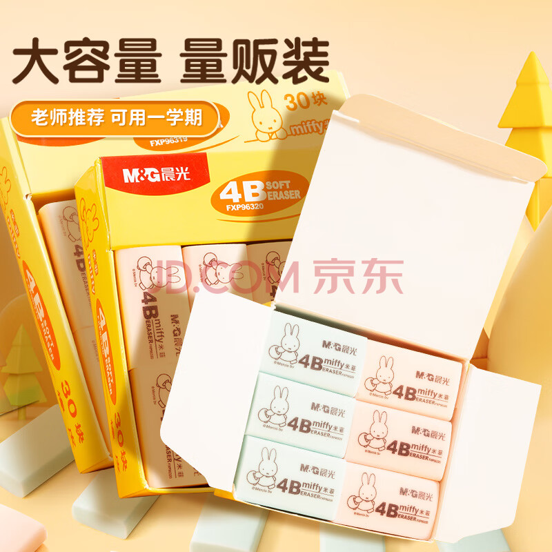 商品相册:晨光(M&G)文具30块4B小号橡皮擦 学生美术绘图考试橡皮 米菲蓝色/粉色FXP96320第1张/共8