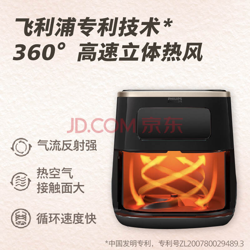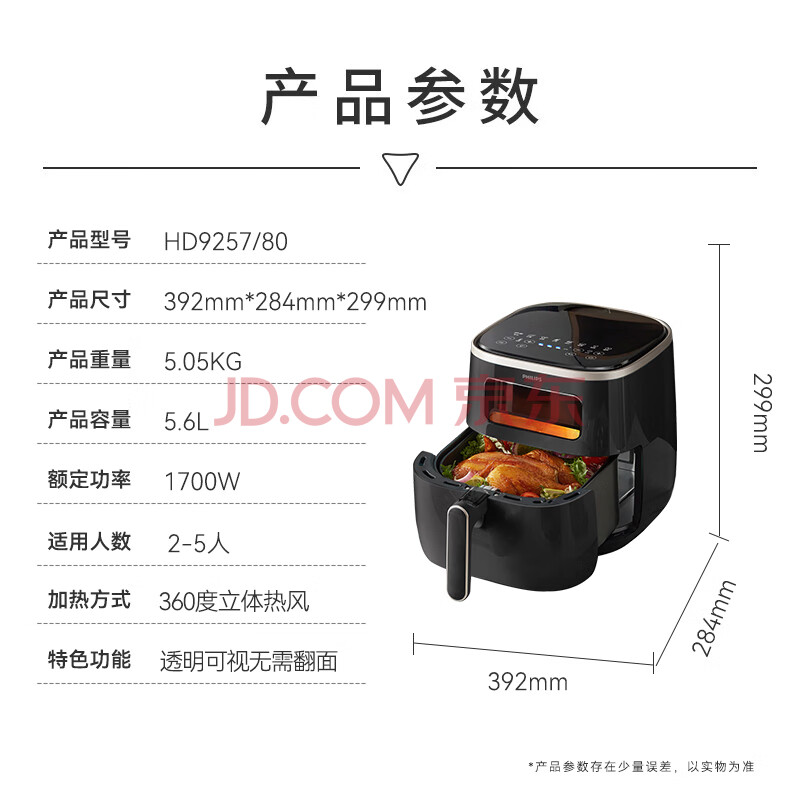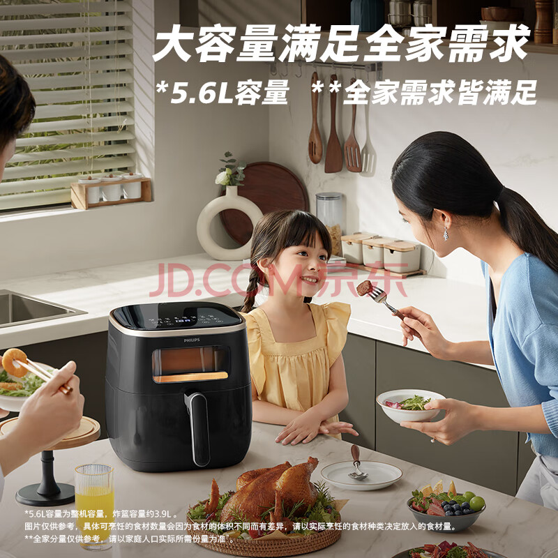 商品相册:飞利浦(PHILIPS)海星空气炸锅 可视不用翻面 家用5.6L大容量 精准控温 智能触屏 送礼必备 多功能全自动 HD9257/80第