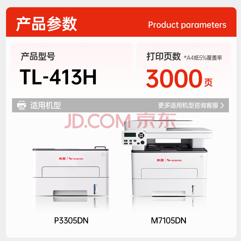 商品相册:奔图(PANTUM)TL-413H原装高容量粉盒 适用P3305DN M7105DN打印机墨盒墨粉 碳粉盒 硒鼓3000页第
