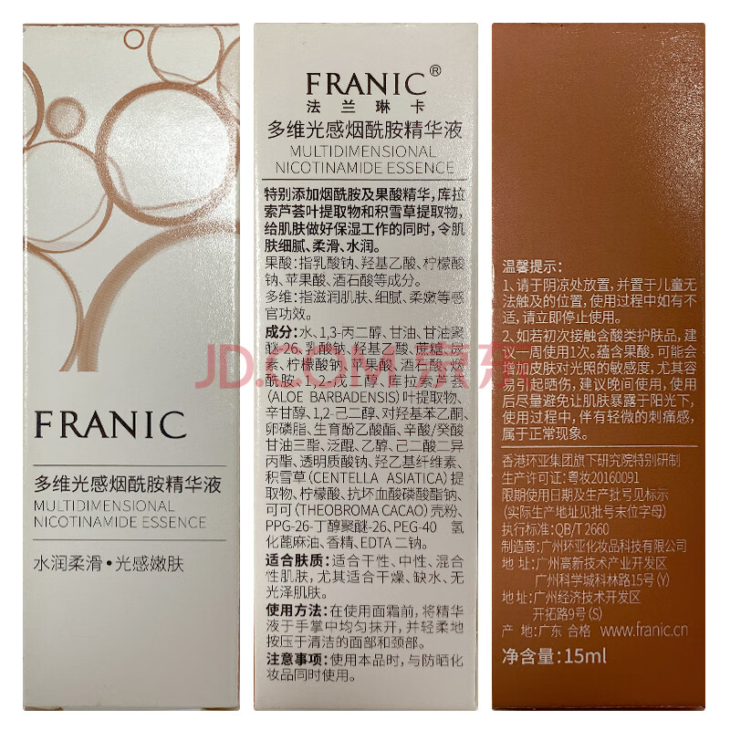 商品相册:法兰琳卡多维光感烟酰胺面部护肤精华液补水保湿提亮肤色15ml第