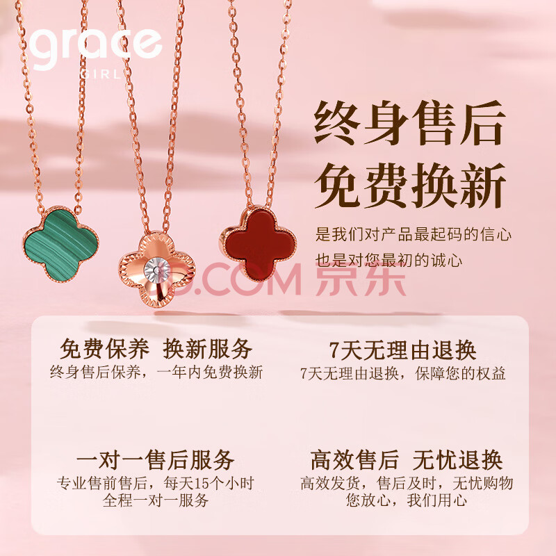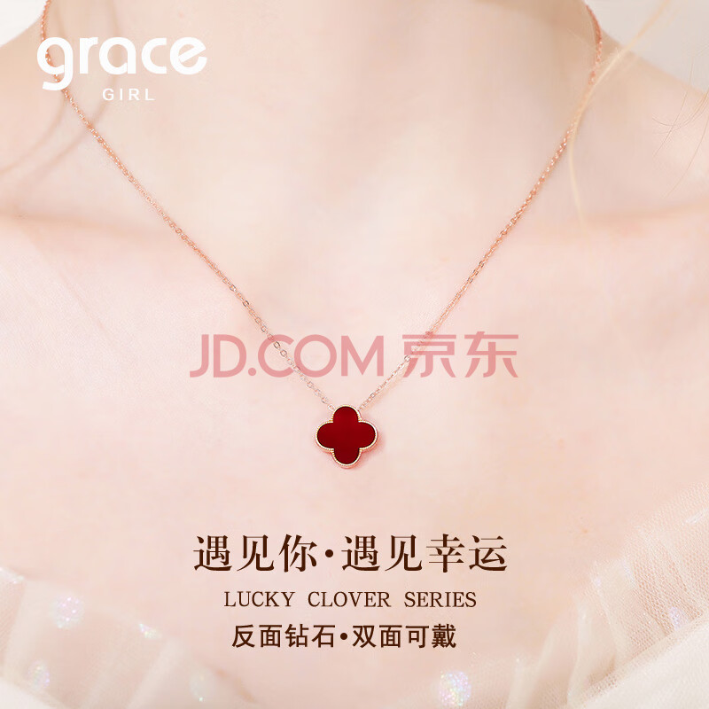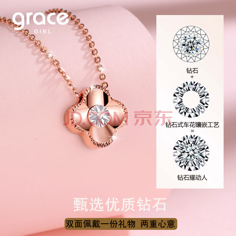 商品相册:Grace Girl钻石四叶草双面项链女小清新玫瑰金锁骨链纪念日生日礼物送女友第