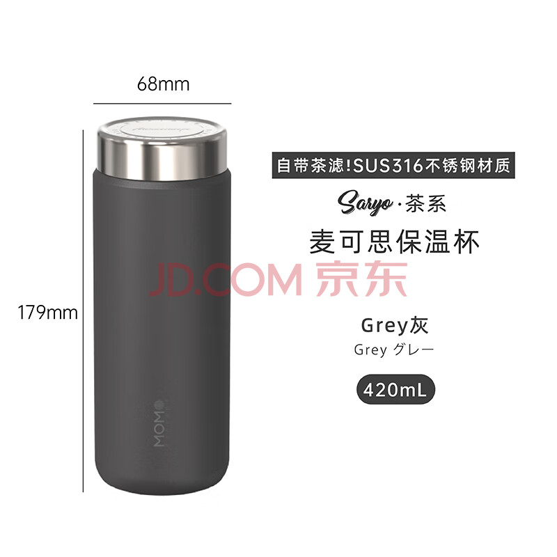 商品相册:MOMOCONCEPT泡茶保温杯男士高颜值实用杯子316不锈钢momo车载水杯女420ml第