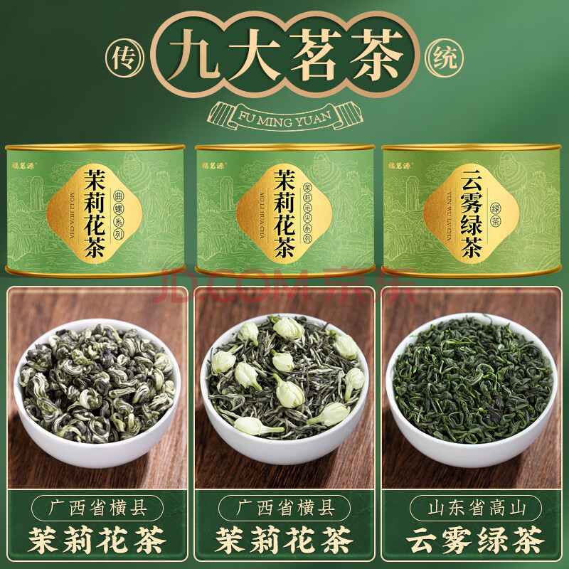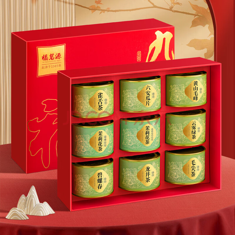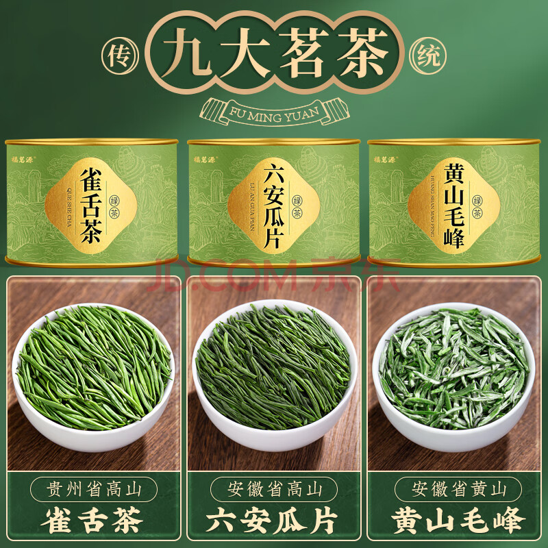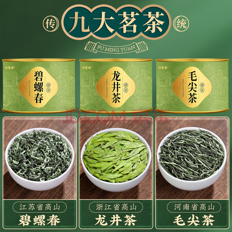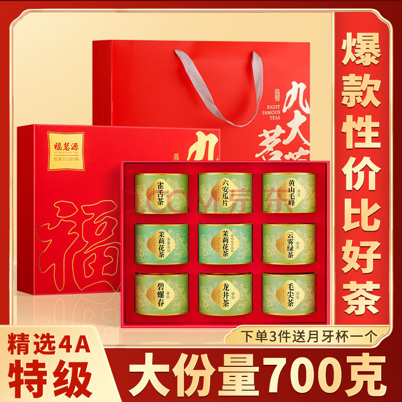 商品相册:福茗源九大绿茶700g 特级明前新茶碧螺春龙井雀舌毛尖瓜片茶叶礼盒送人第