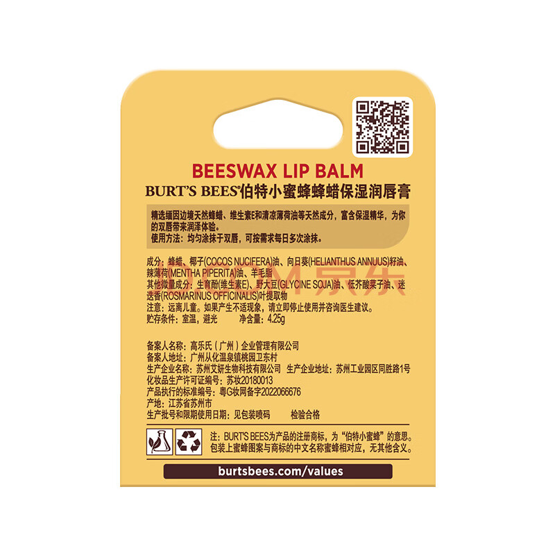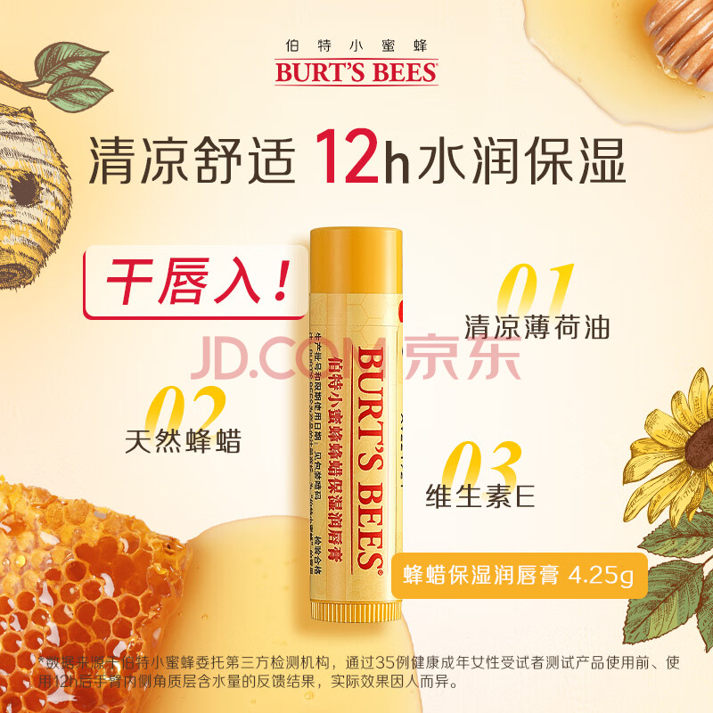 商品相册:伯特小蜜蜂(Burt's Bees)经典润唇膏男女通用天然保湿滋润清爽不油腻无色 蜂蜡薄荷4.25g第