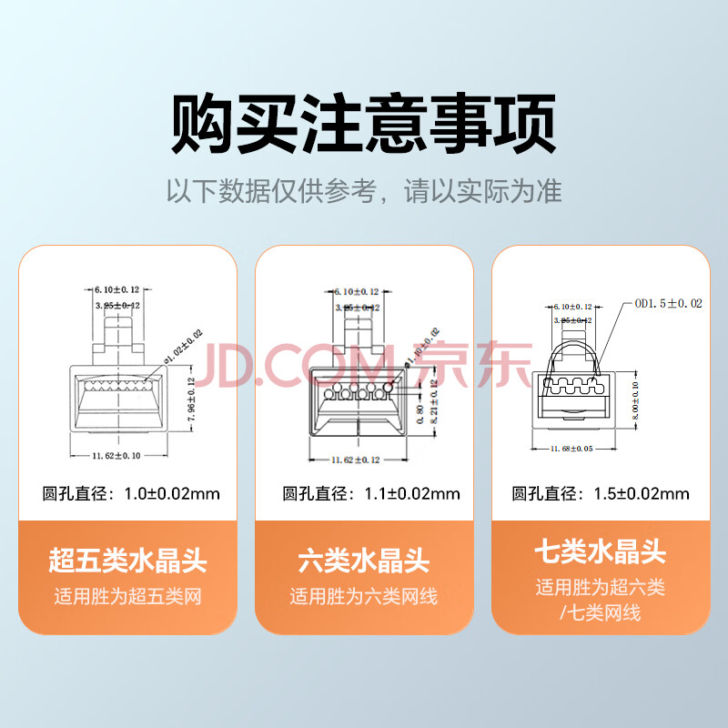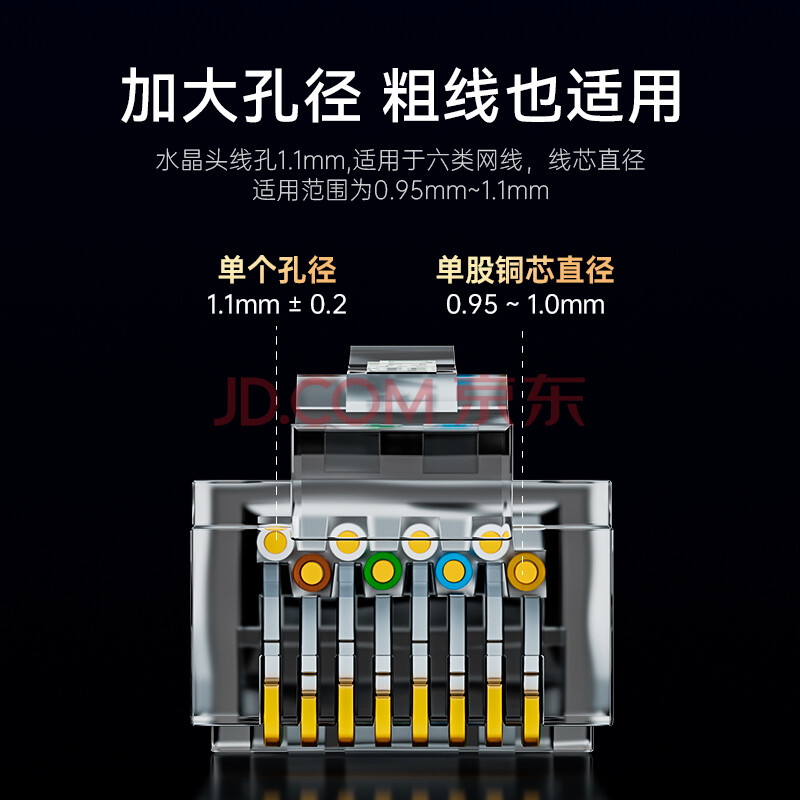 商品相册:胜为六类水晶头6类千兆网络网线接头 RJ45工程级电脑网线连接器 Cat6水晶头镀金100个 CRJ6100E第