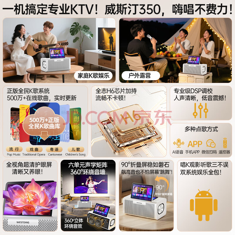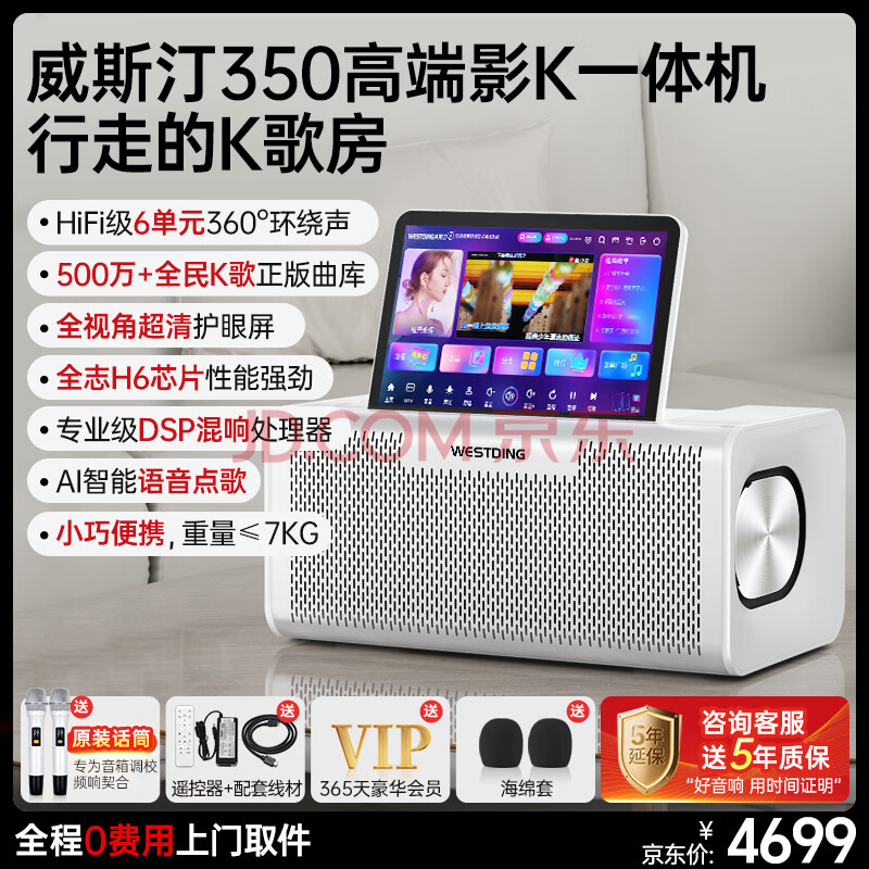商品相册:威斯汀家庭k歌一体机ktv音响 350-128G 便携桌面蓝牙音箱 高音质客厅家用第