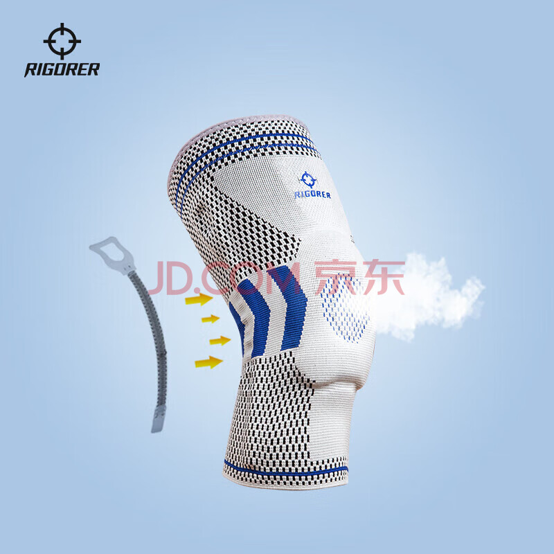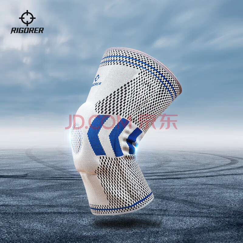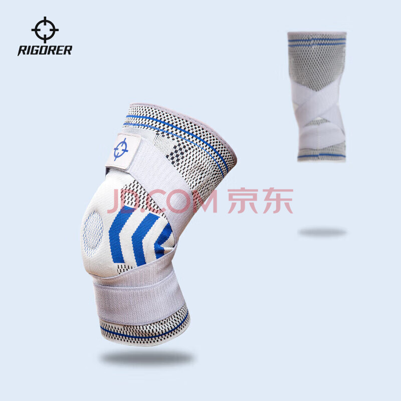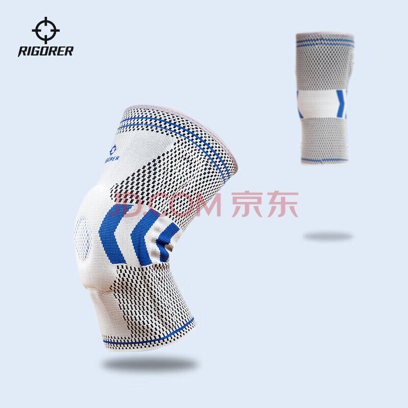 商品相册:准者准者护膝男跑步健身薄款运动装备膝关节防护无绑带(单只装)灰蓝M第1张/共6