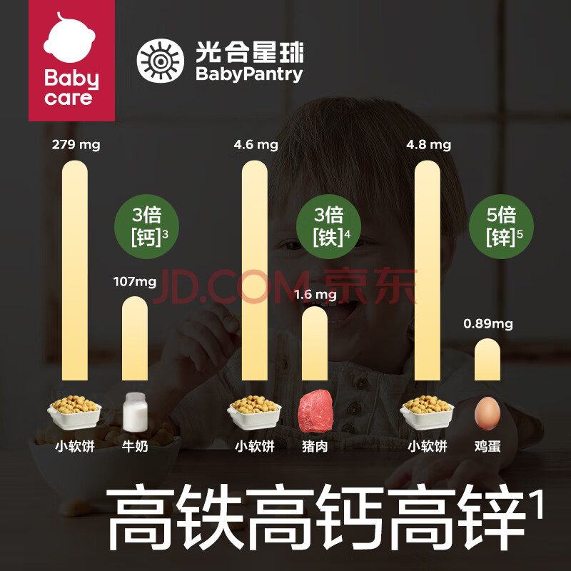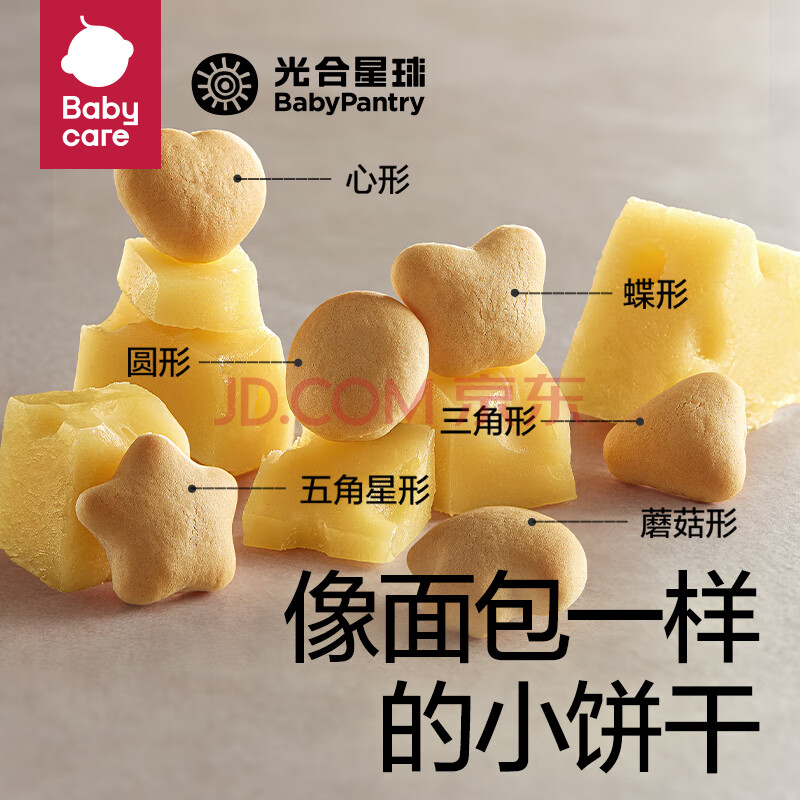 商品相册:光合星球babycare宝宝儿童零食钙铁锌芝士小软饼干60g第