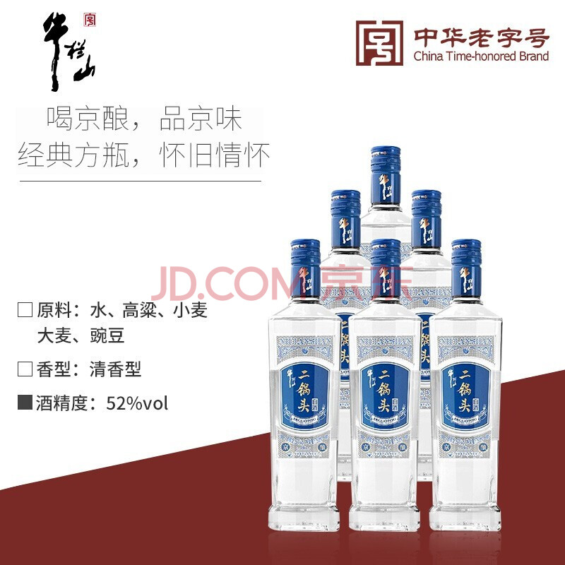 商品相册:牛栏山二锅头 京酿 清香型白酒 52度 1000ml*6瓶 整箱装 口粮酒第