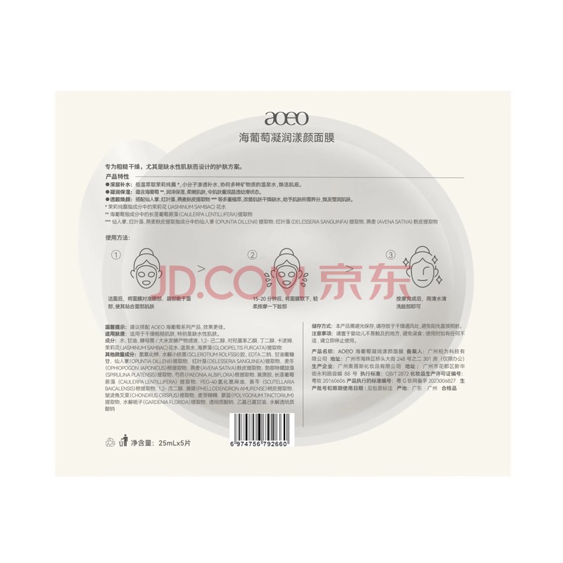 商品相册:AOEO凝润漾颜面膜5片装海葡萄玻尿酸保湿补水面膜补水第